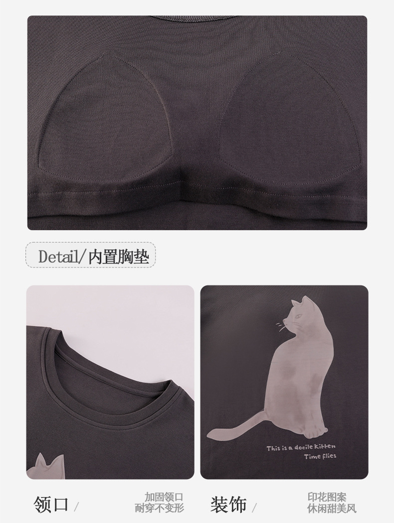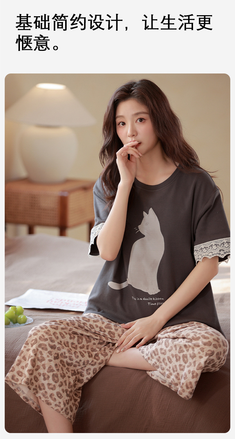 雀说 【带胸垫】纯棉睡衣女薄款短袖七分裤两件套 商品图4