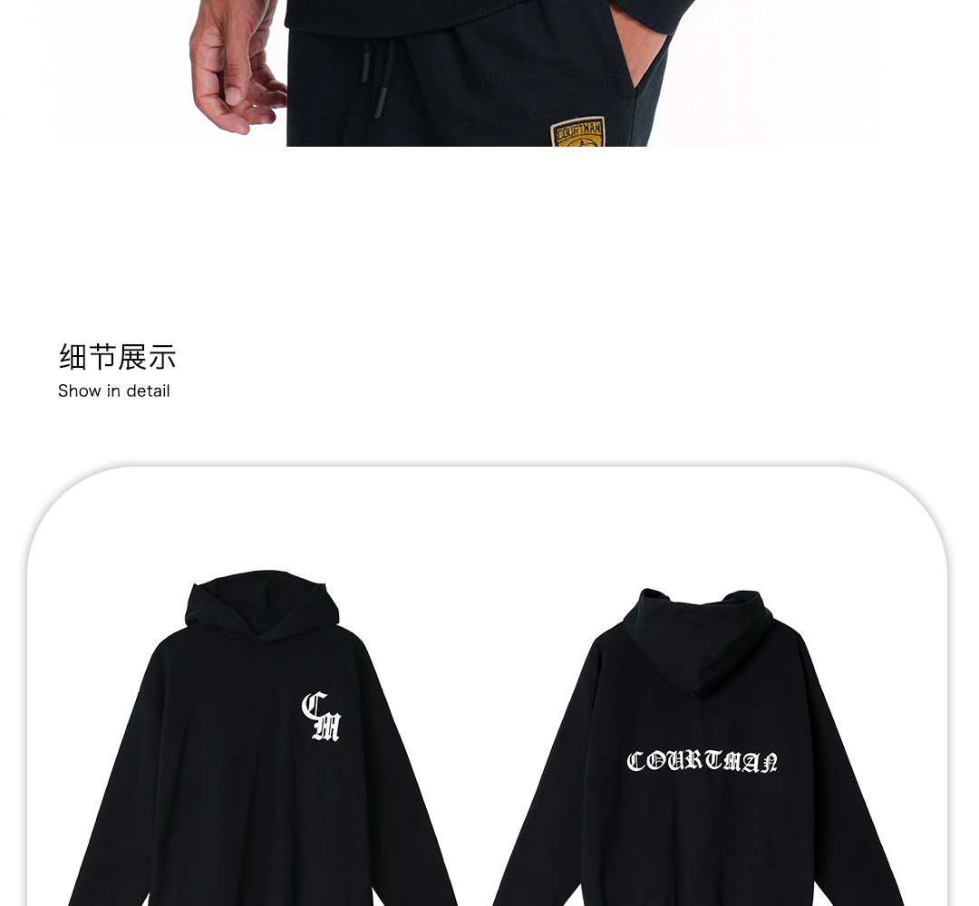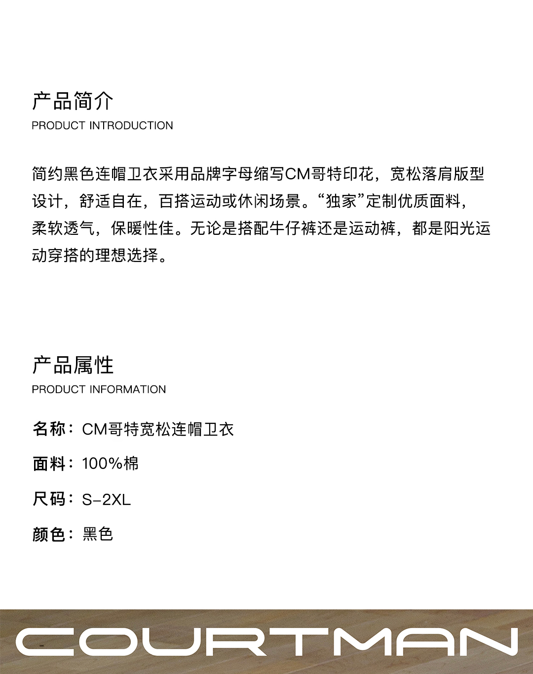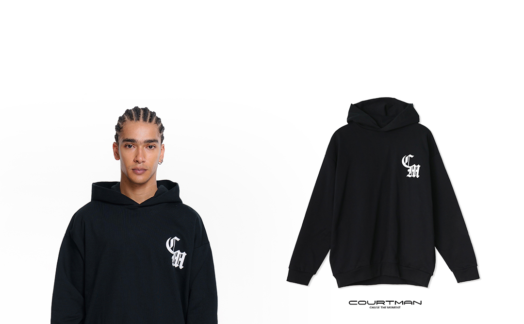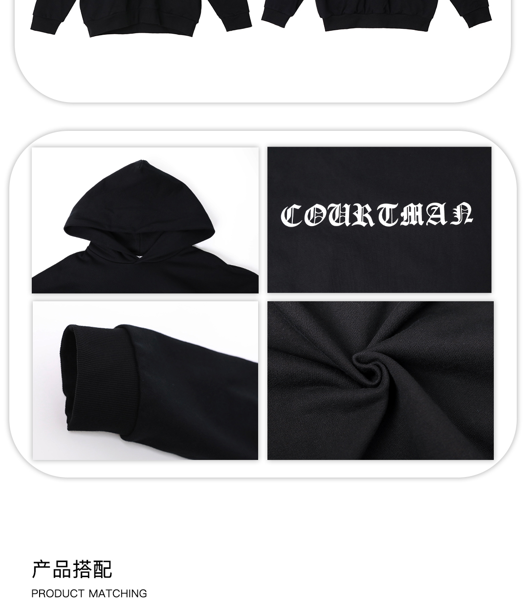 COURTMAN野球帝 美式复古情侣哥特logo印花宽松连帽运动休闲卫衣