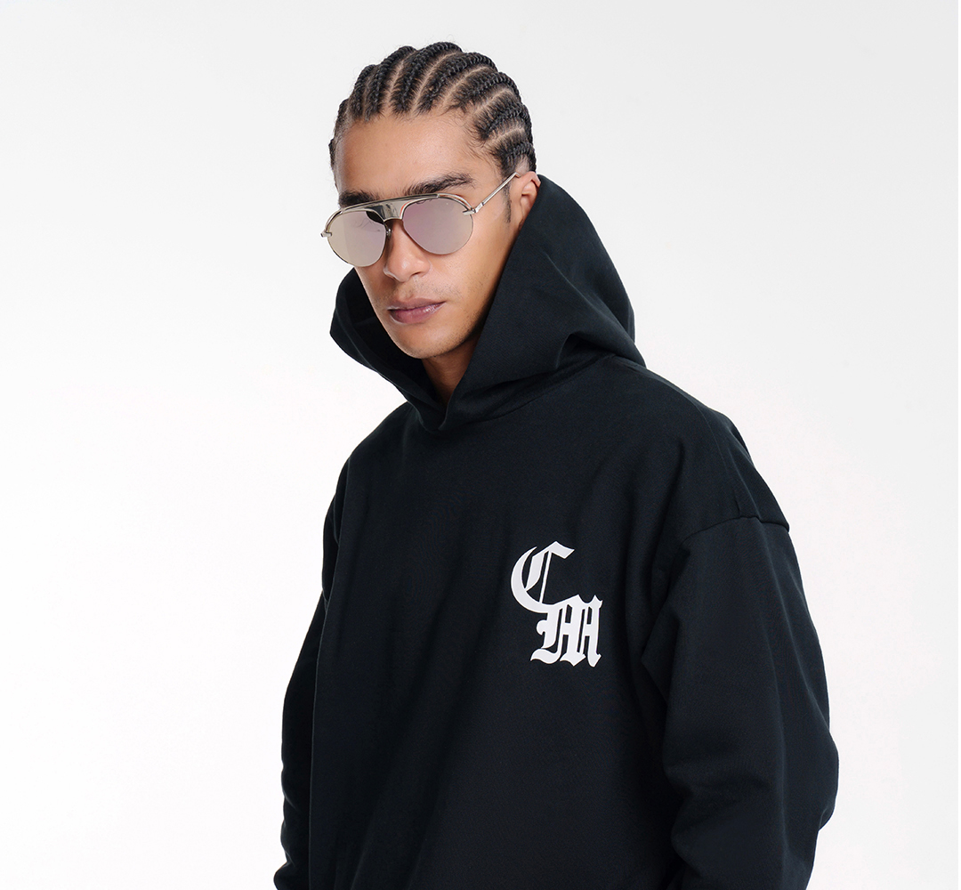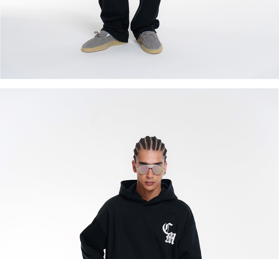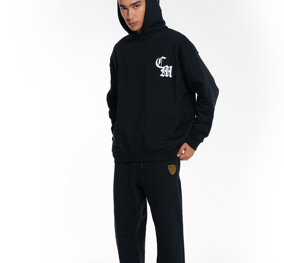 COURTMAN野球帝 美式复古情侣哥特logo印花宽松连帽运动休闲卫衣