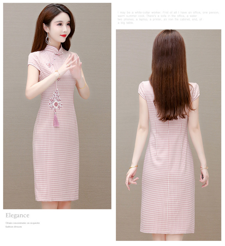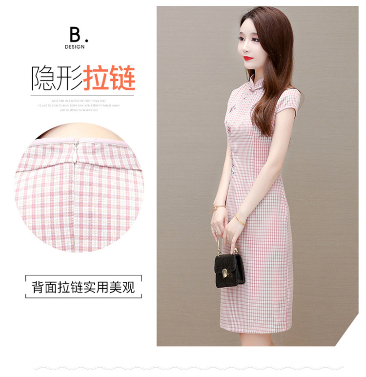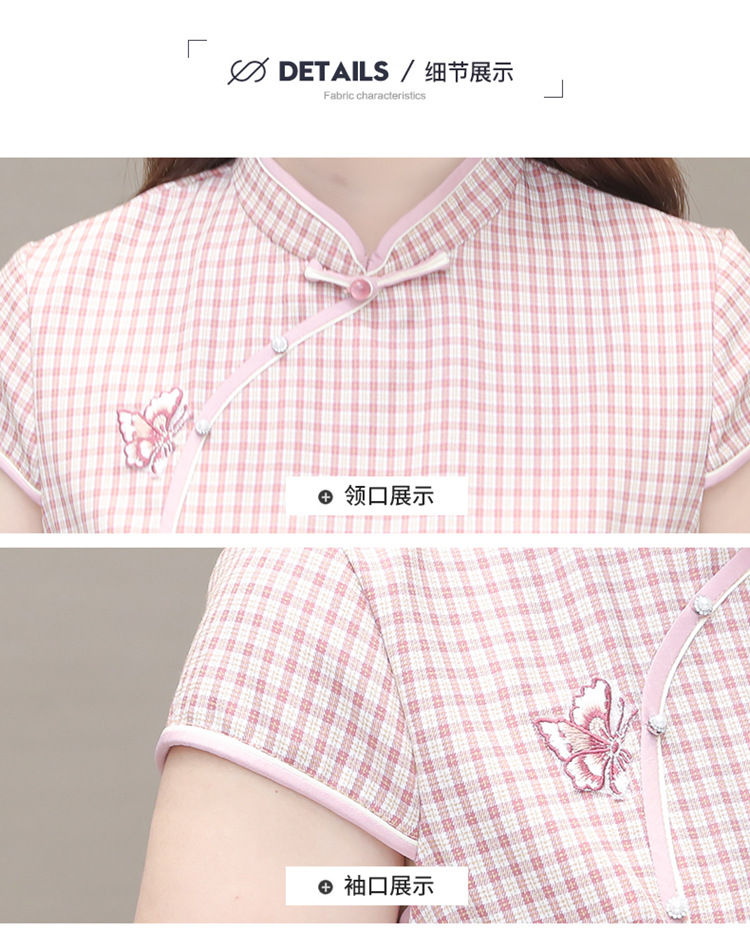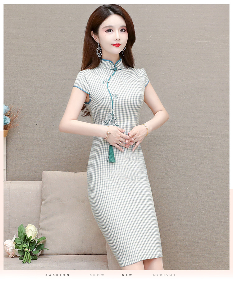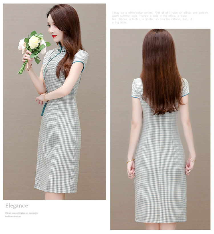 国风优雅,格纹改良旗袍裙QYM-YJ-24004-L