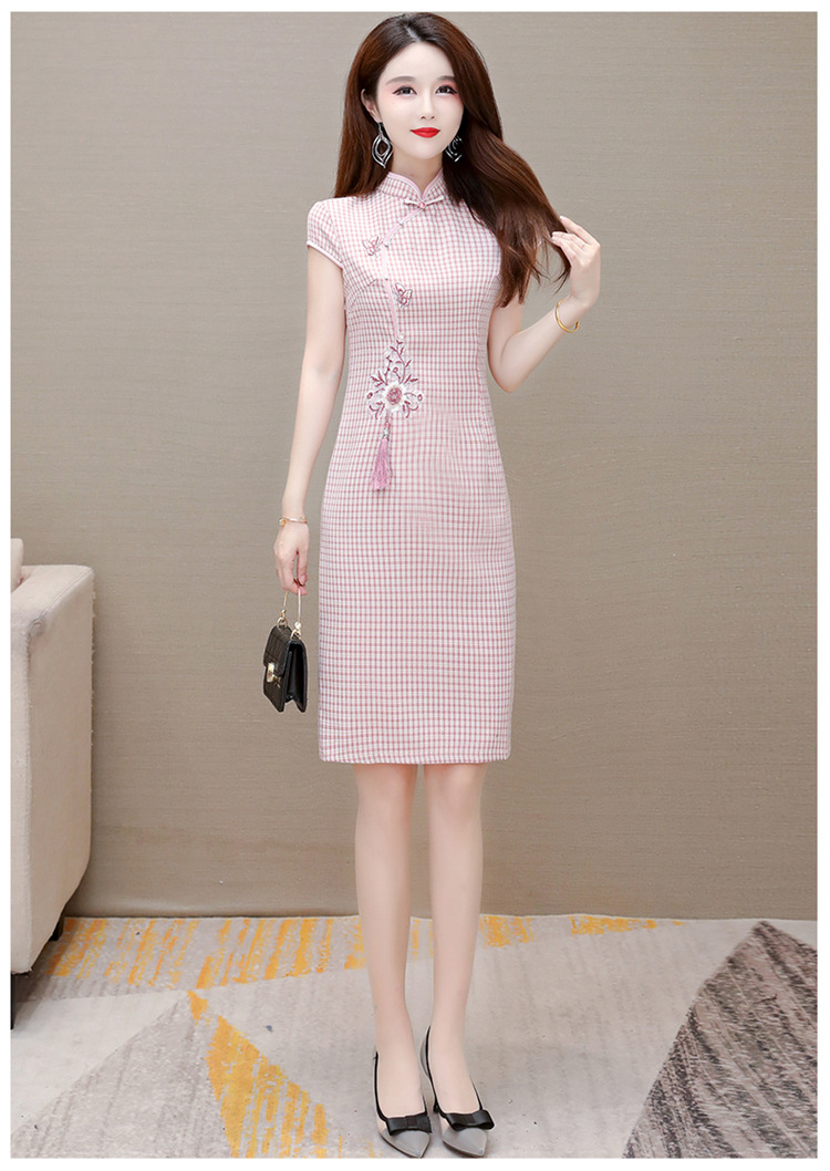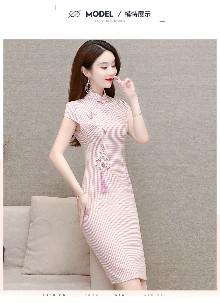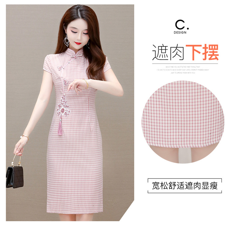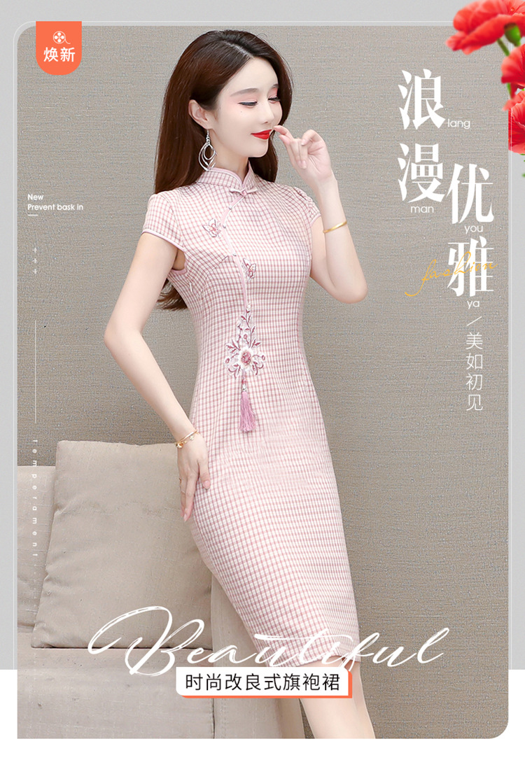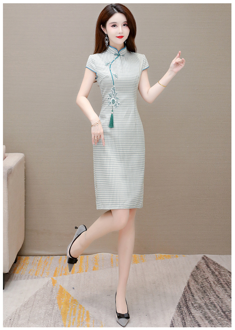 国风优雅,格纹改良旗袍裙QYM-YJ-24004-L