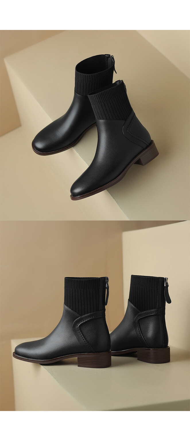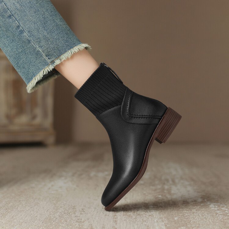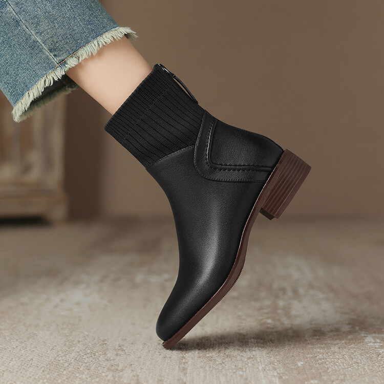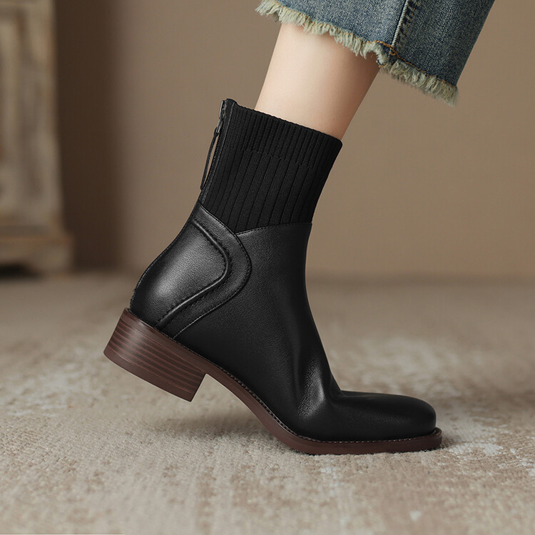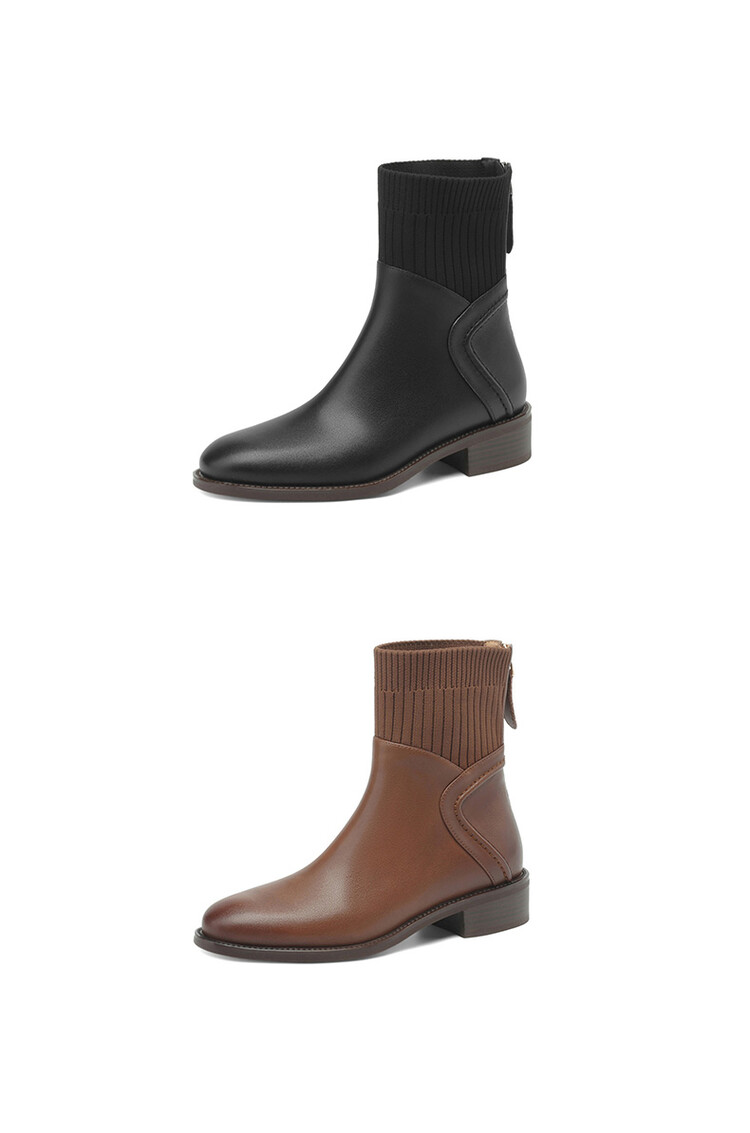 方头切尔西靴粗跟短靴,弹力针织袜靴高跟时装靴NJMK-K750