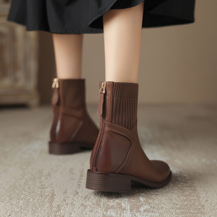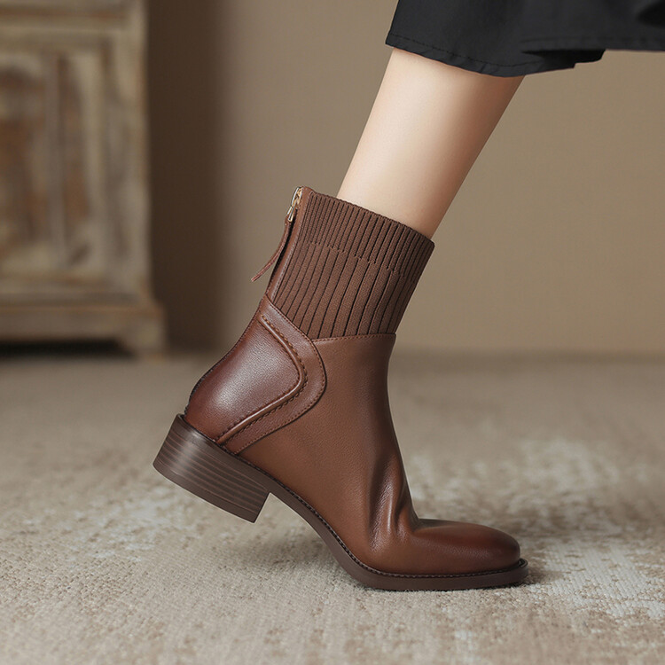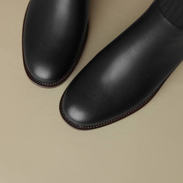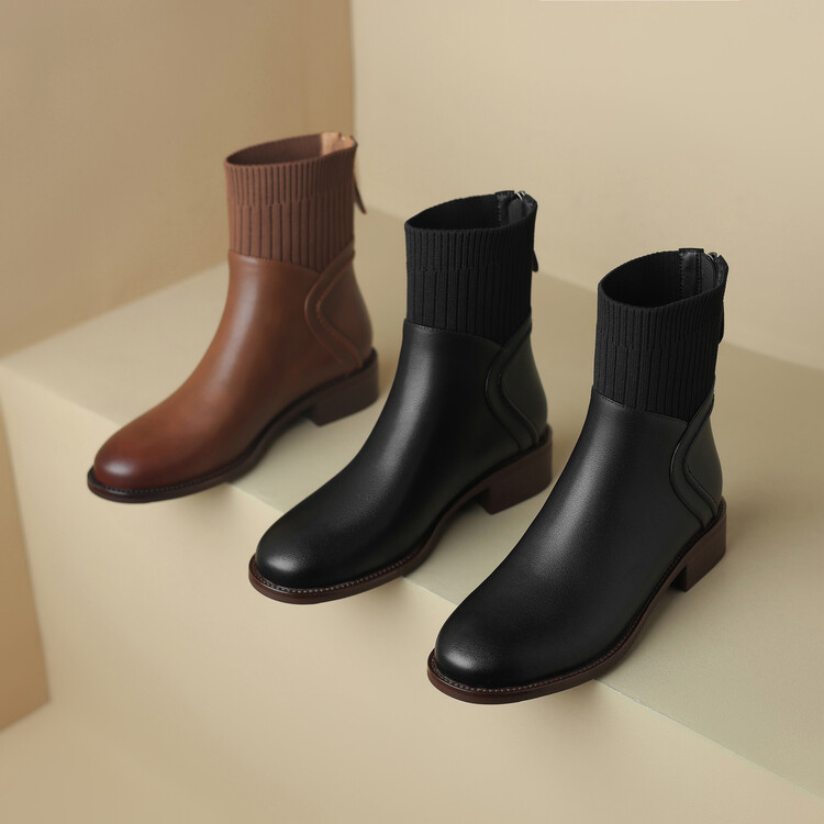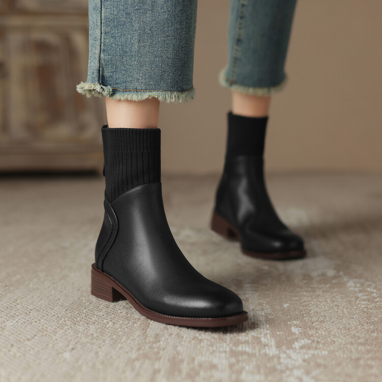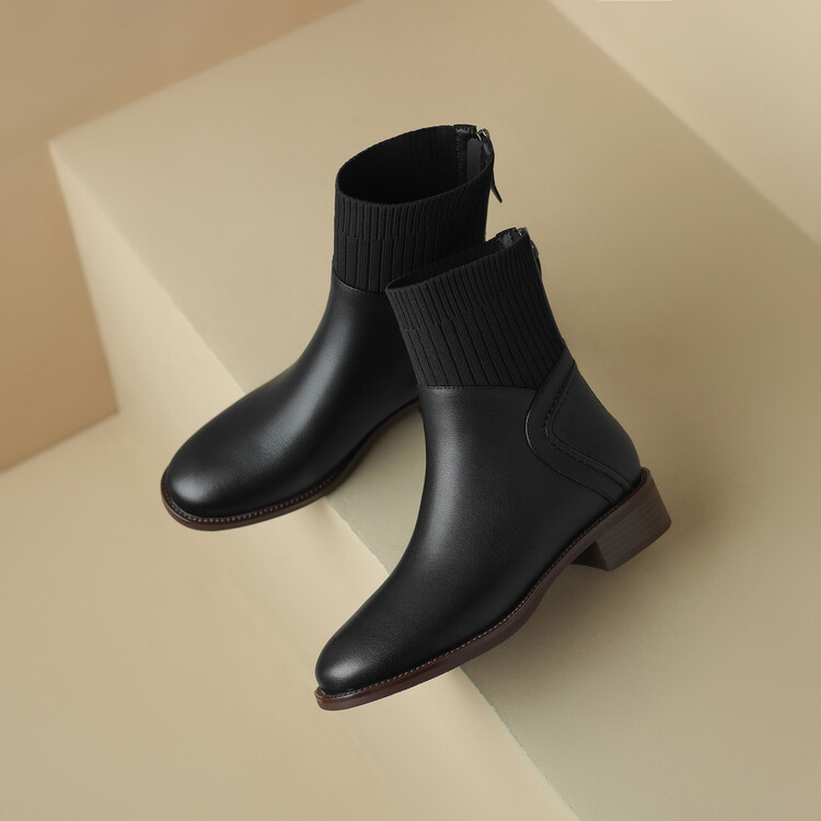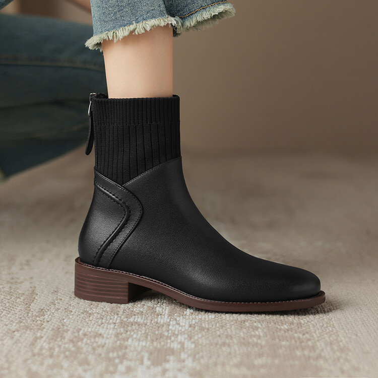 方头切尔西靴粗跟短靴,弹力针织袜靴高跟时装靴NJMK-K750