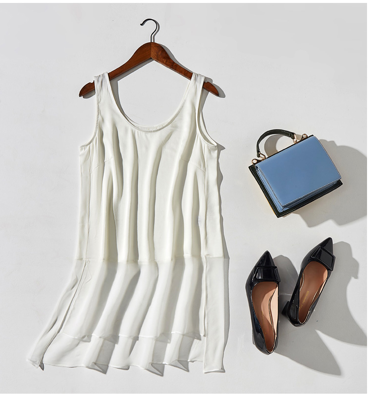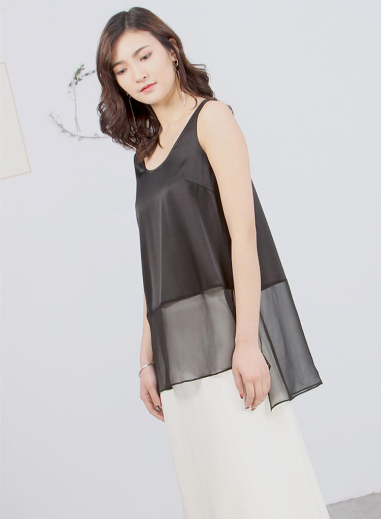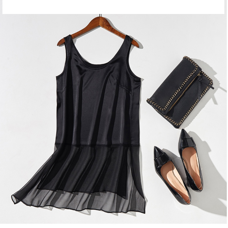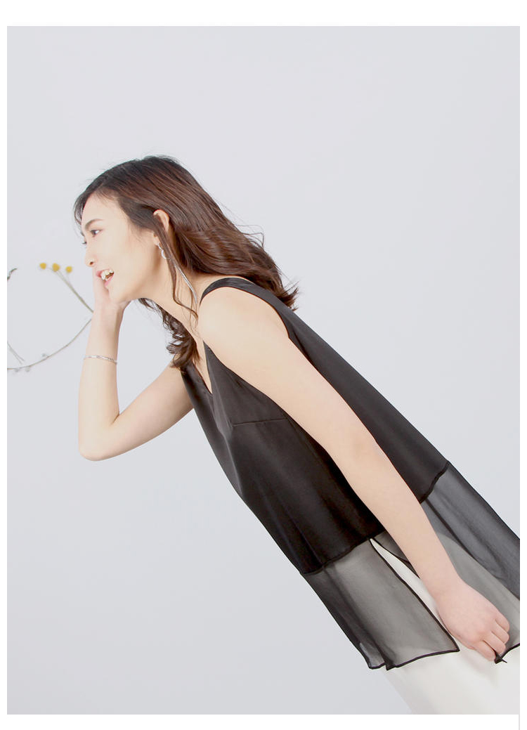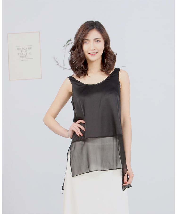 丁摩 桑蚕丝外穿真丝拼接网纱背心桑蚕丝打底背心19-32 DB299240531