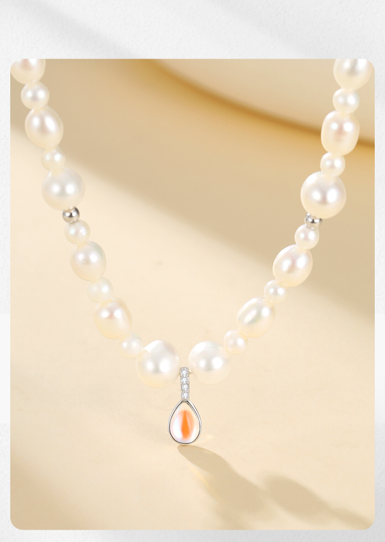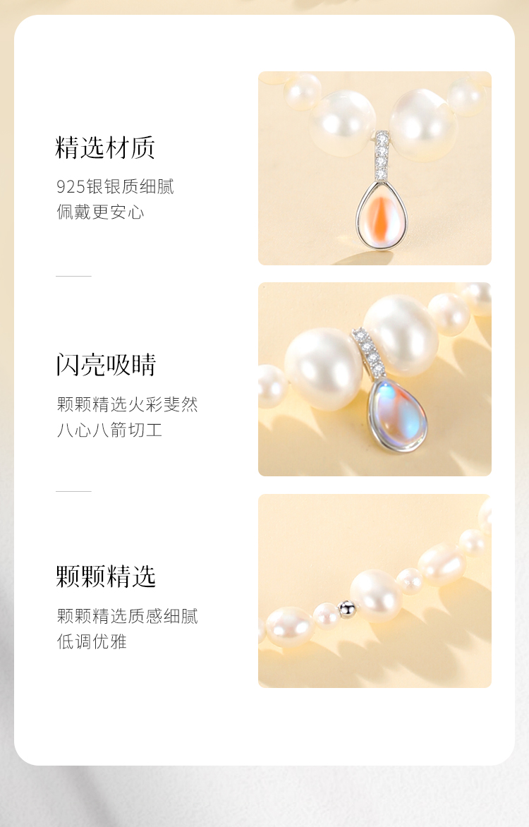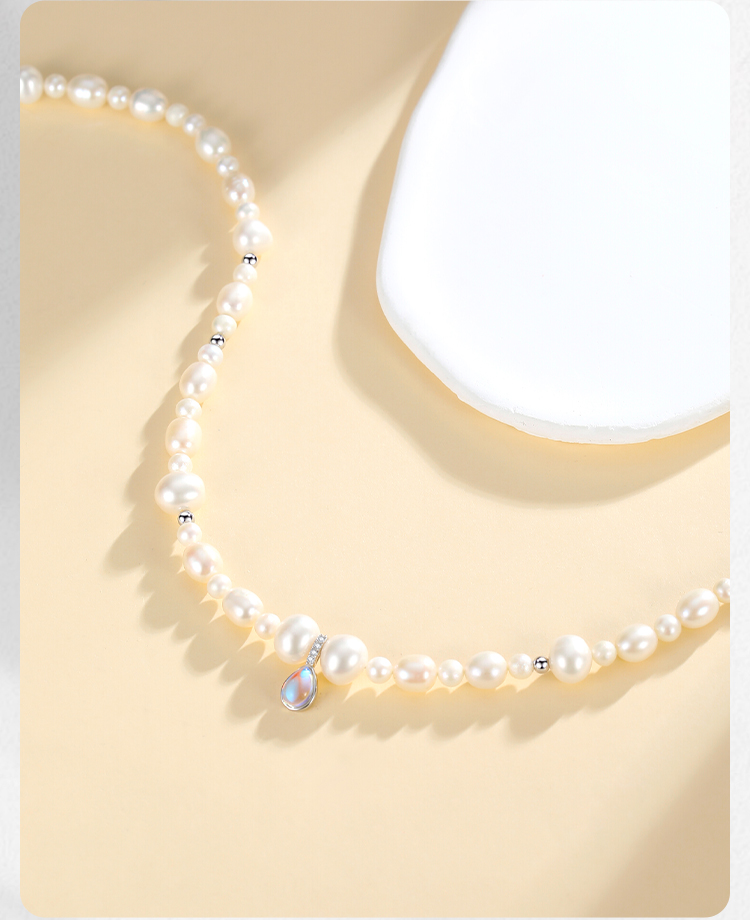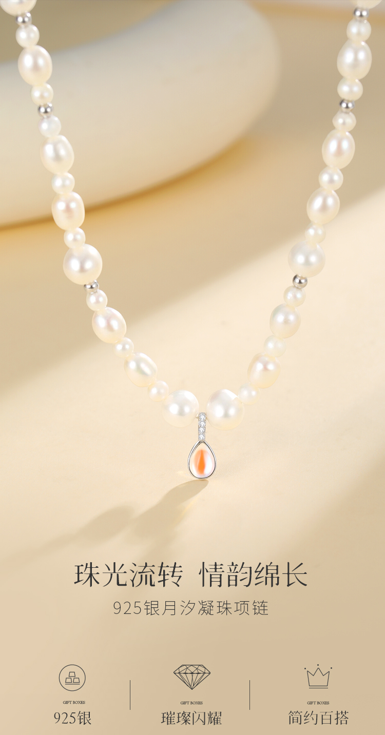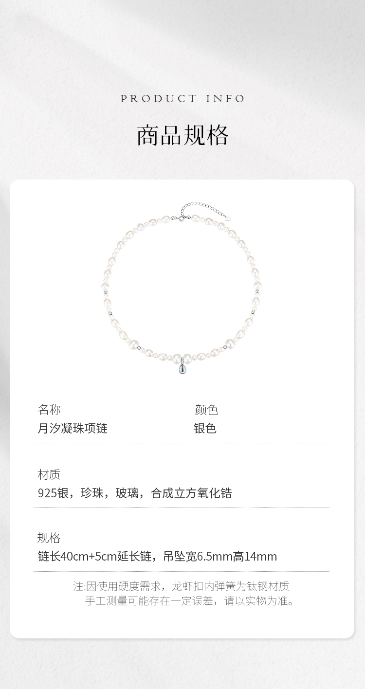Winy S925 银月汐凝珠珍珠项链 小众设计锁骨链 送女友闺蜜浪漫礼物
