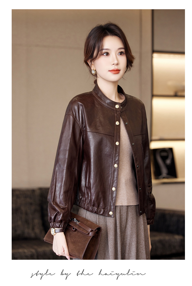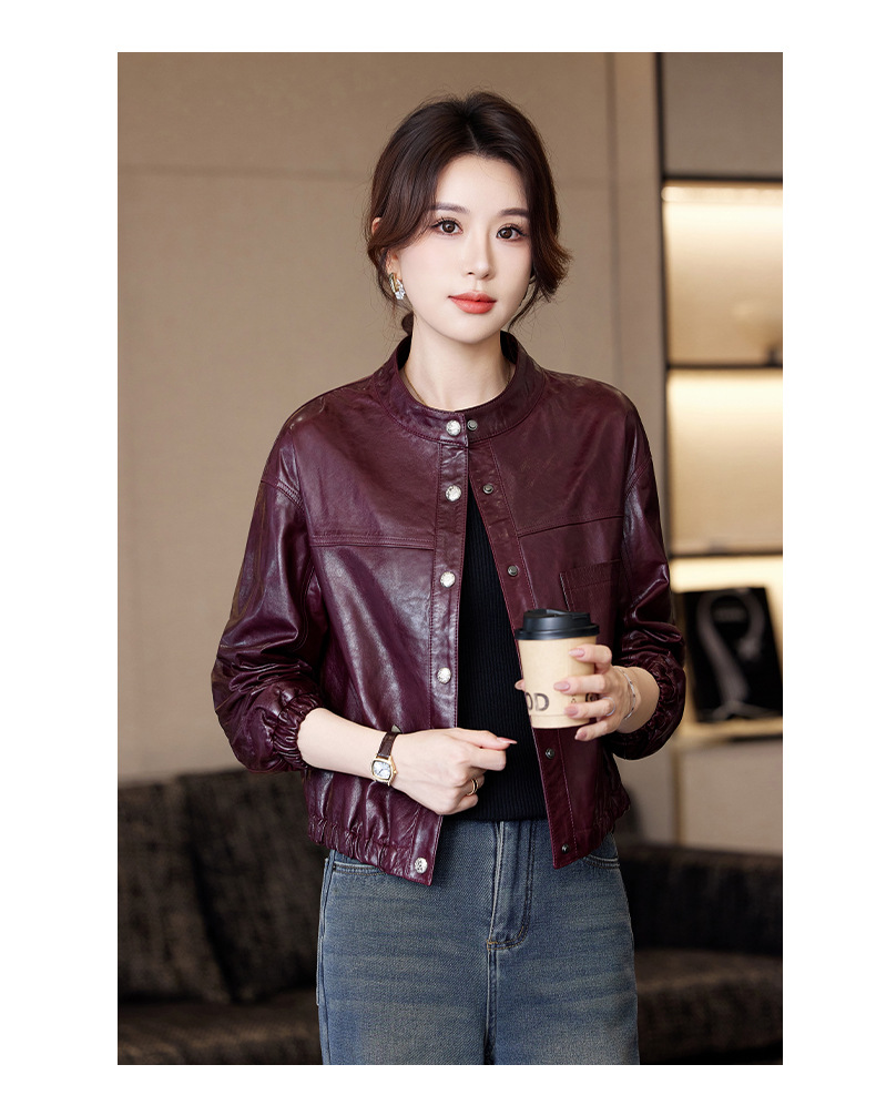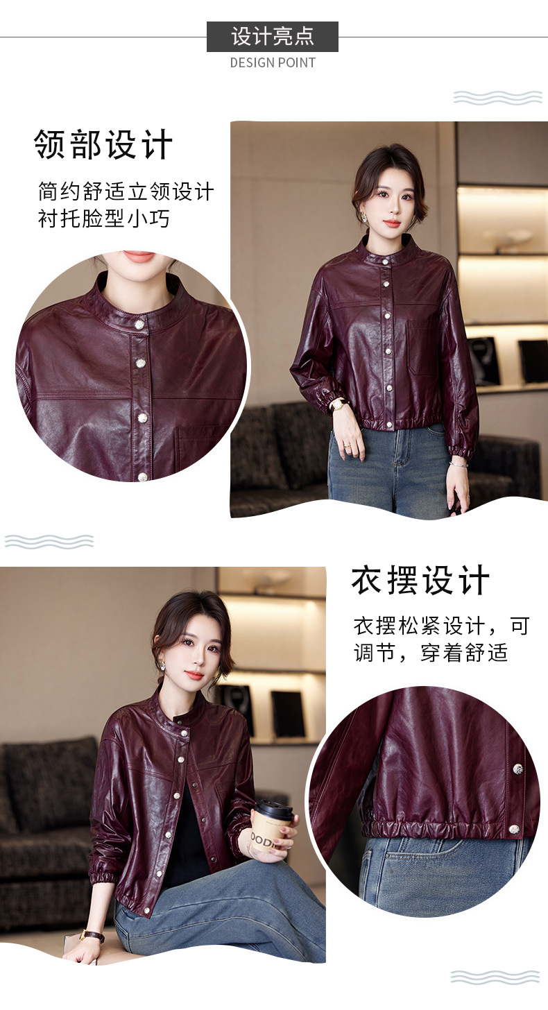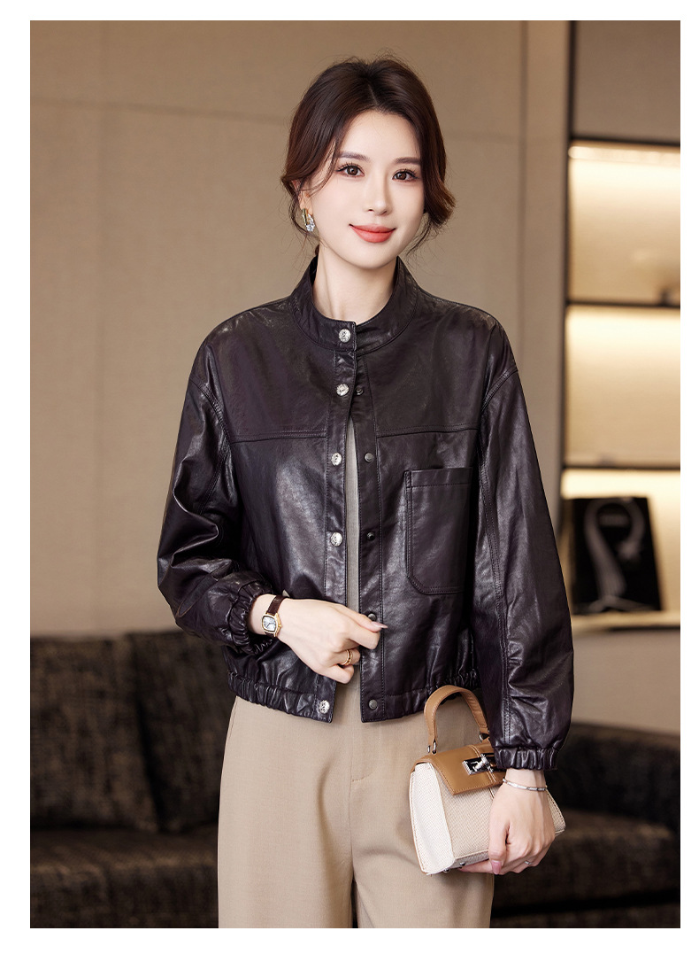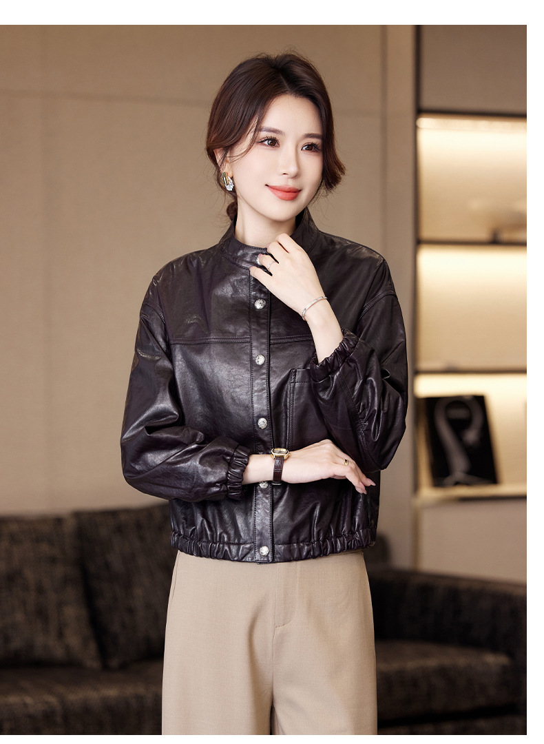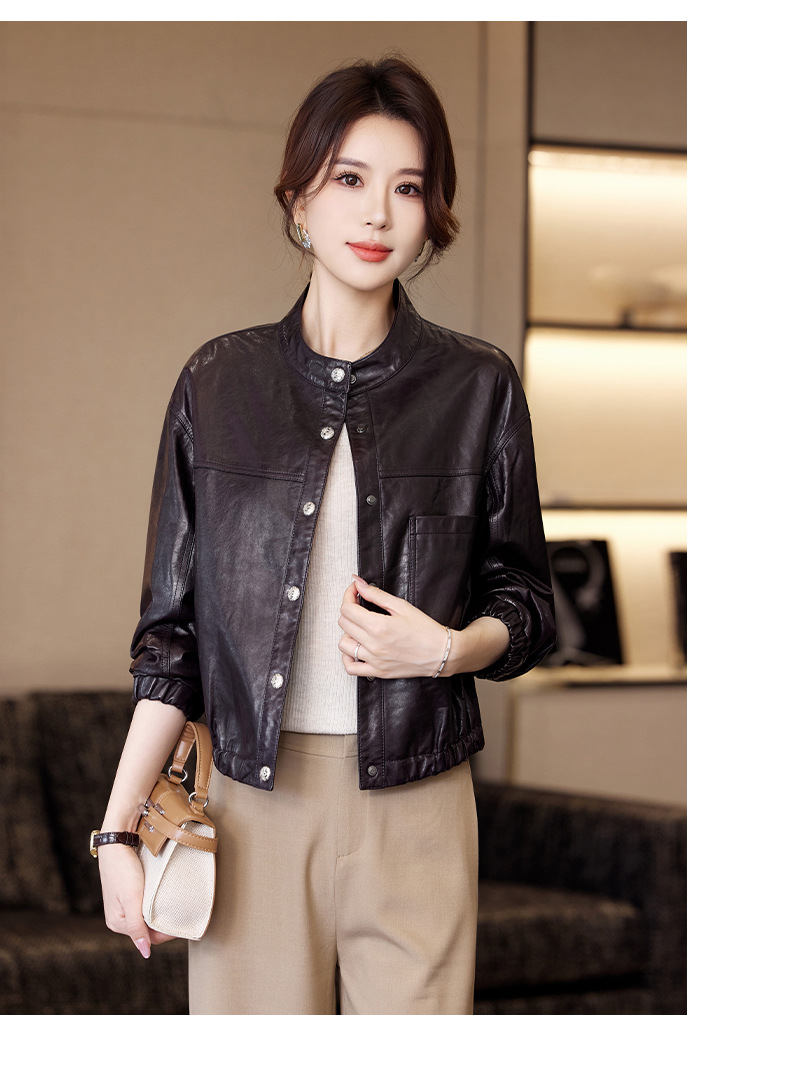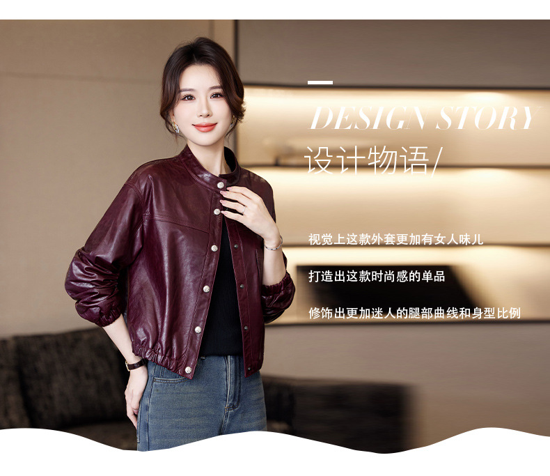 TC 23537复古立领小皮衣外套小个子短款机车真皮绵羊皮夹克 商品图3
