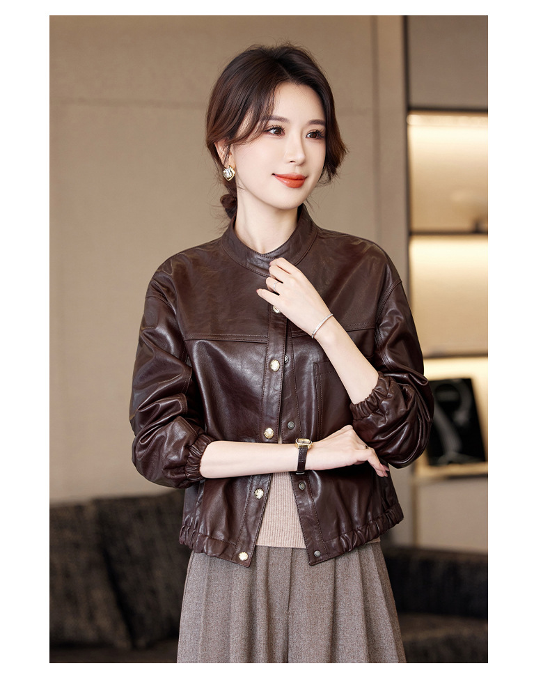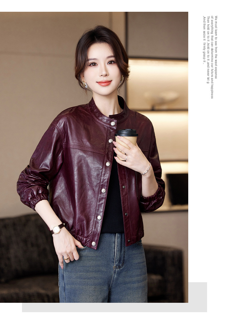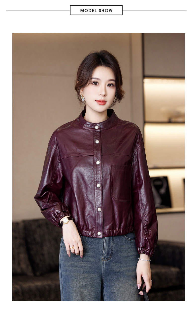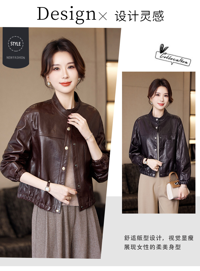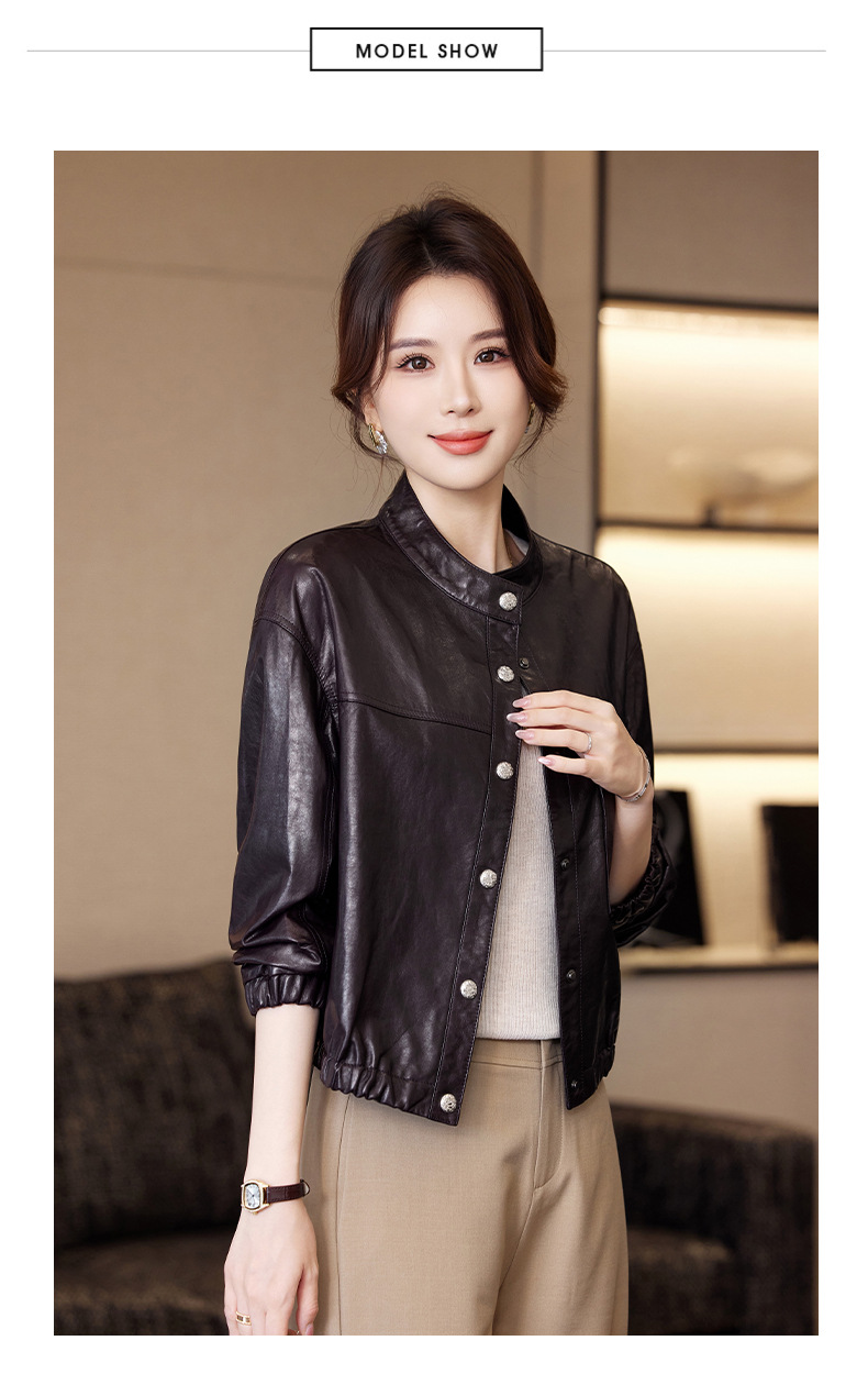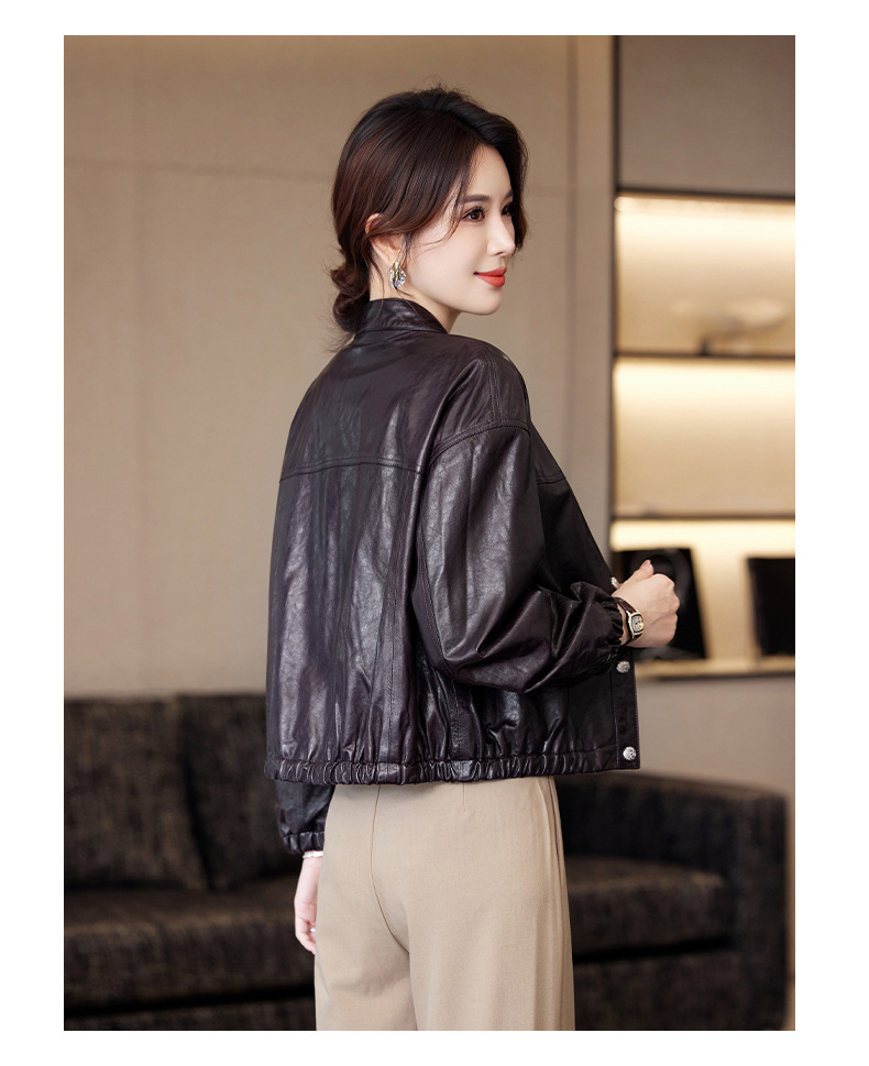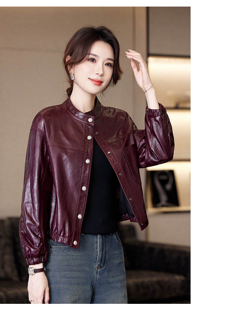 TC 23537复古立领小皮衣外套小个子短款机车真皮绵羊皮夹克 商品图3
