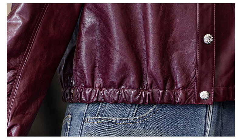TC 23537复古立领小皮衣外套小个子短款机车真皮绵羊皮夹克 商品图4