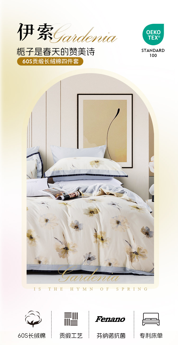 多喜爱 60S贡缎长绒棉法式轻奢四件套 瑰夏/依索hlcs