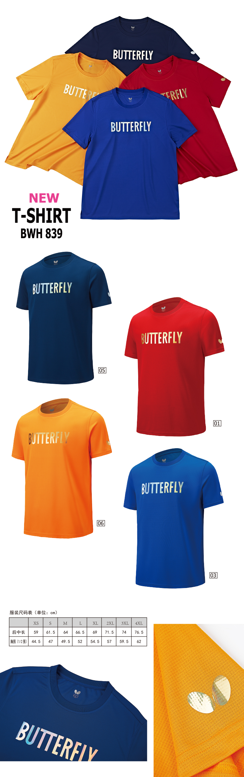 蝴蝶Butterfly BWH839 乒乓球服运动T恤短袖比赛服运动衫 四色可选