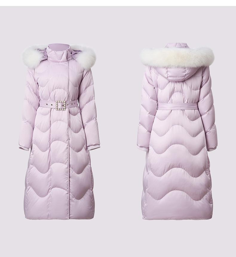 MAXRIENY2024时尚女士连帽收腰中长款加厚保暖冬季冬羽绒服大毛领(货号:MF85DC754)
