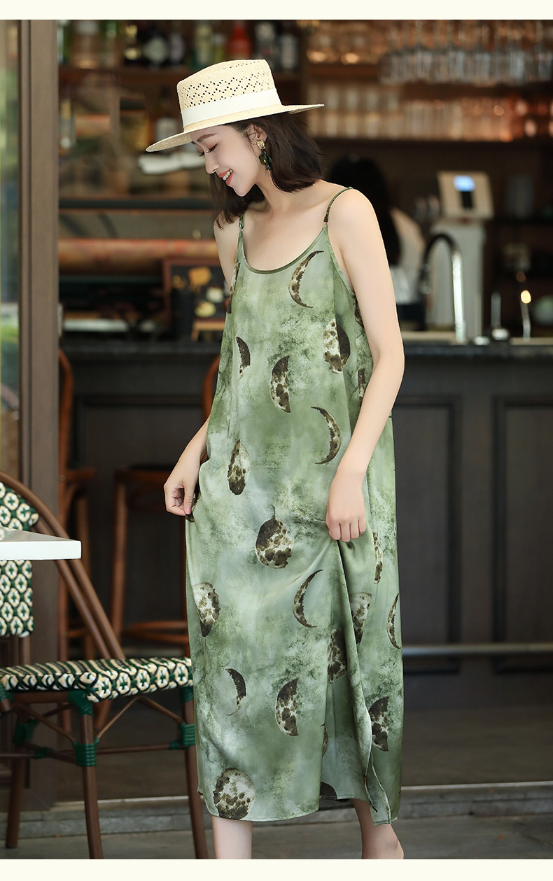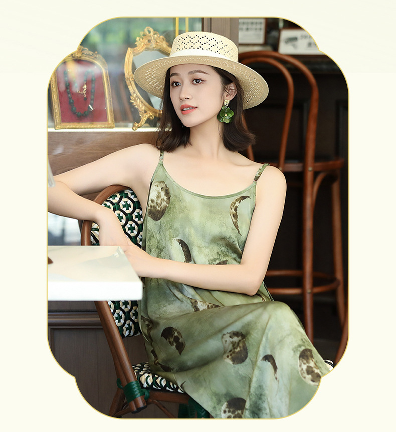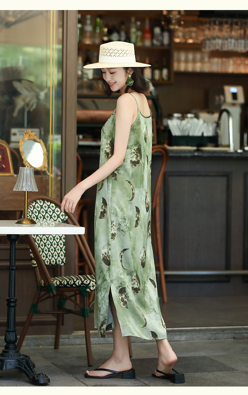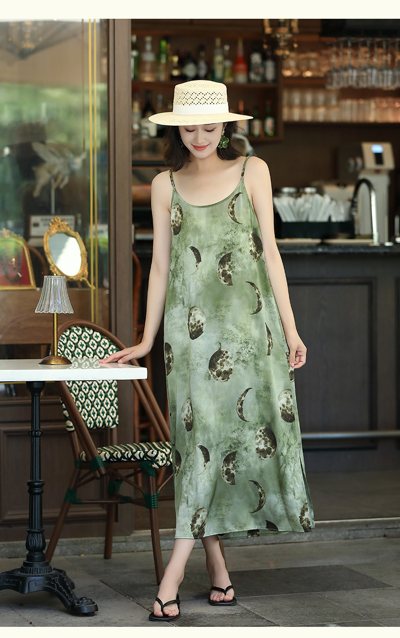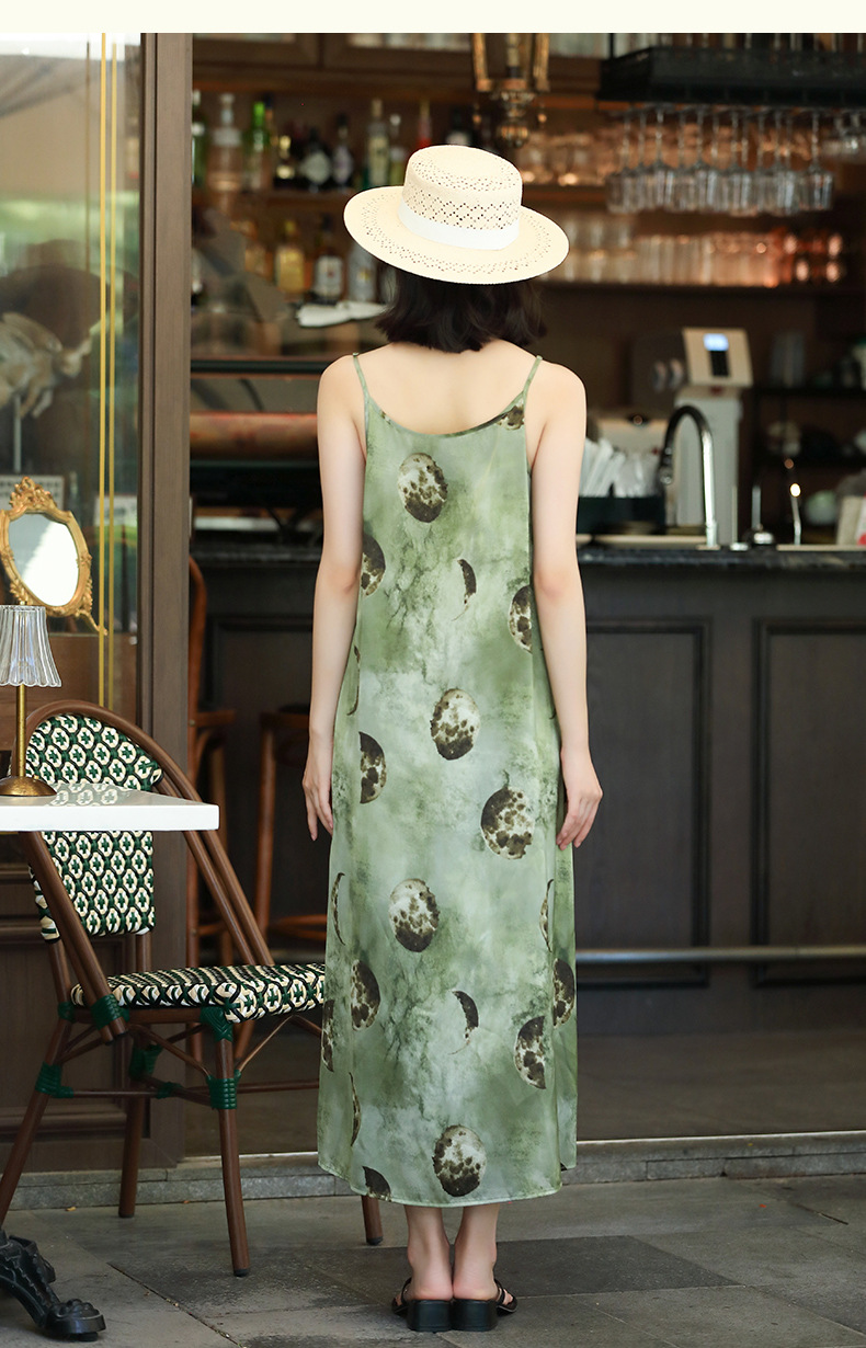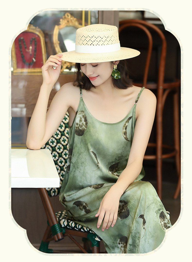 OY-24504法式茶歇缎面吊带裙2024夏季新款精致气质长款修身连衣裙24504