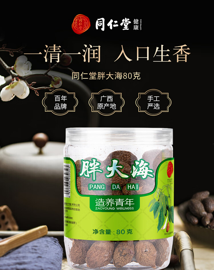 【正宗同仁堂品牌】北京同仁堂 胖大海80g 广西严选 个大饱满 自然甘甜SY