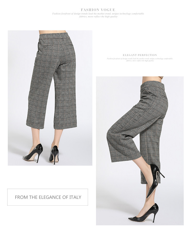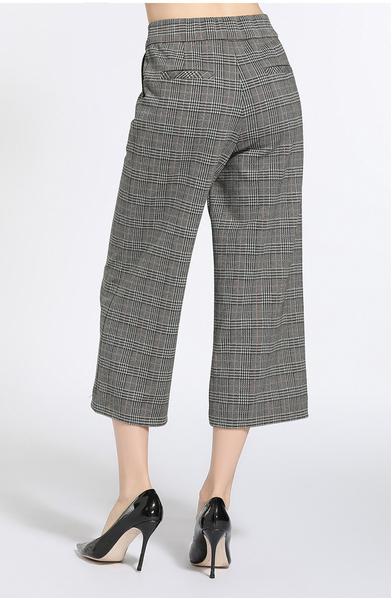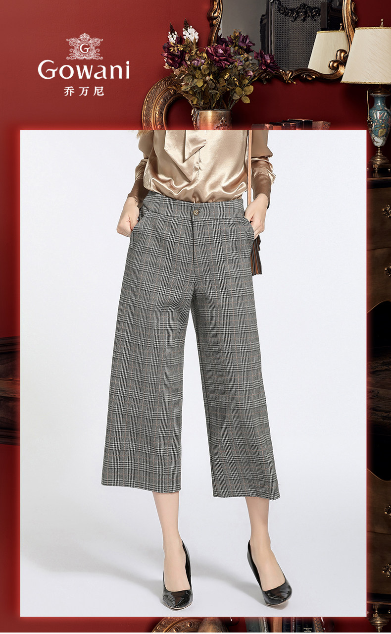 乔万尼阔腿裤女秋冬英伦风复古格子宽松直筒高腰休闲裤子EB4F068