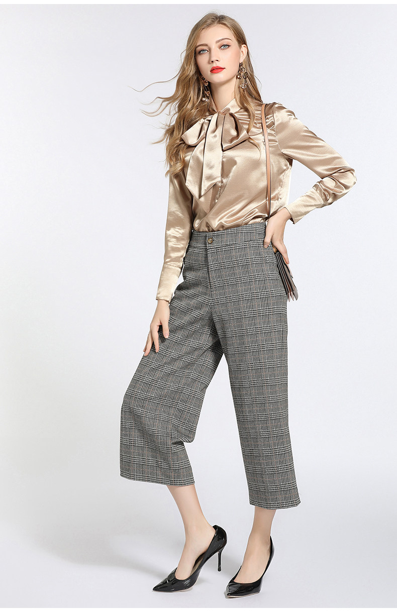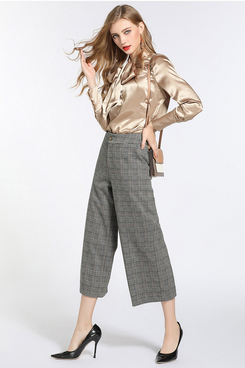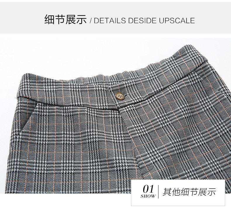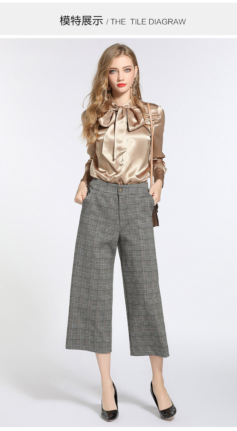 乔万尼阔腿裤女秋冬英伦风复古格子宽松直筒高腰休闲裤子EB4F068
