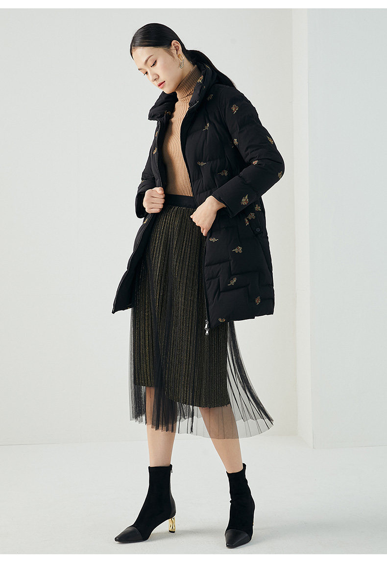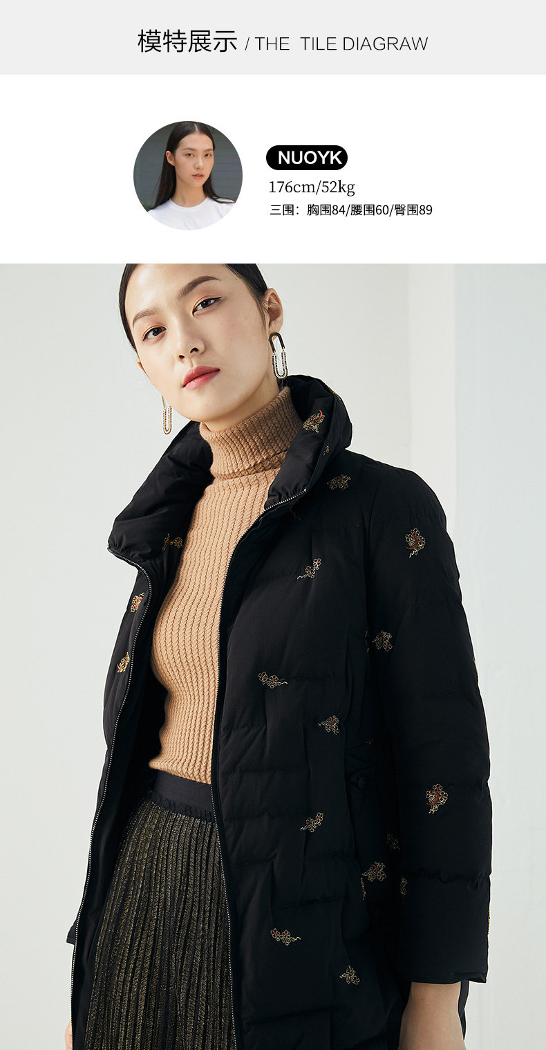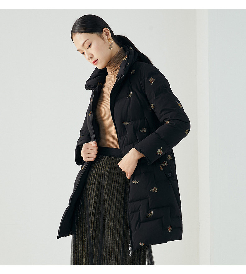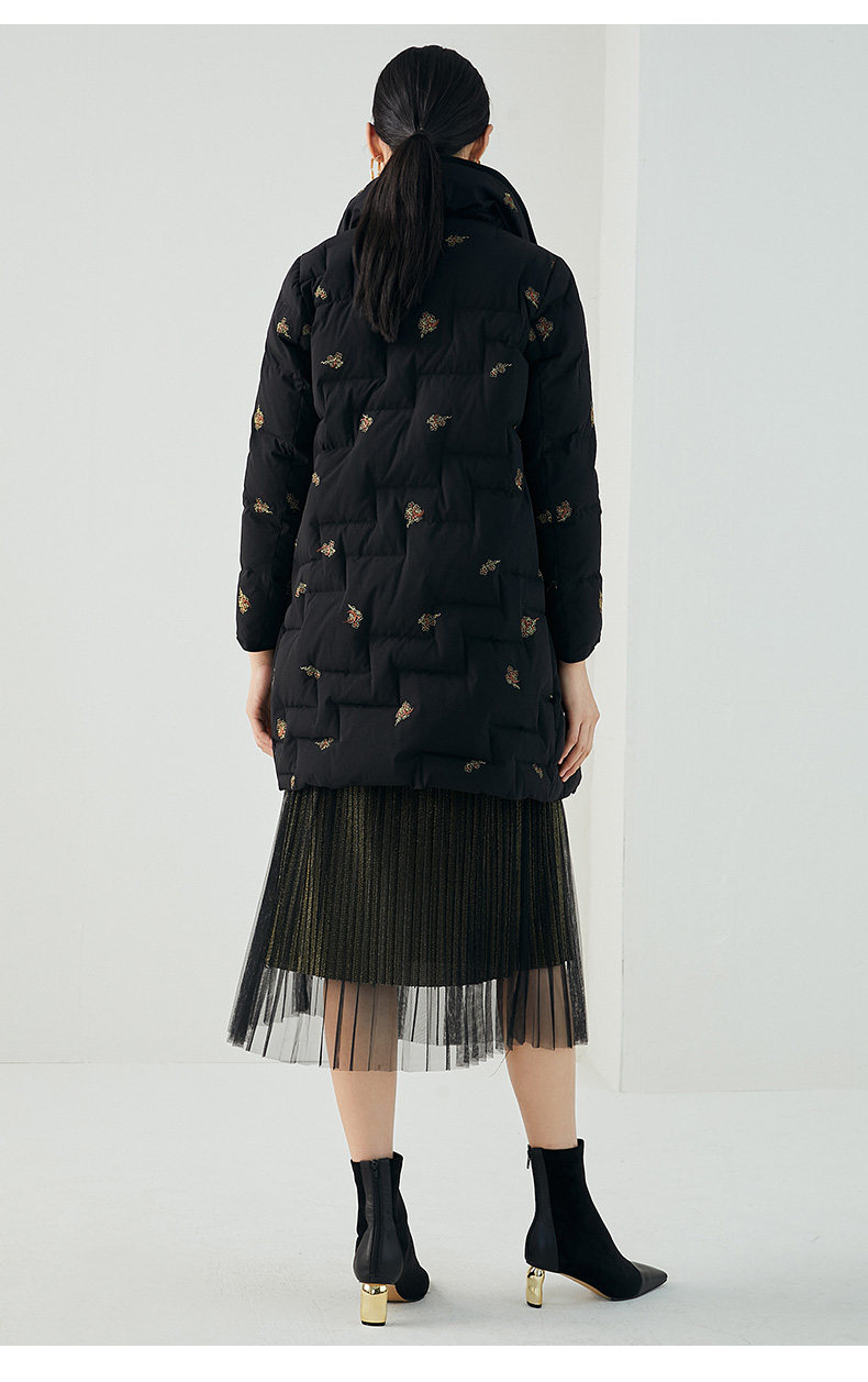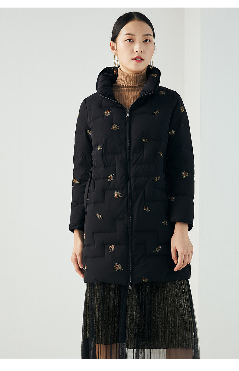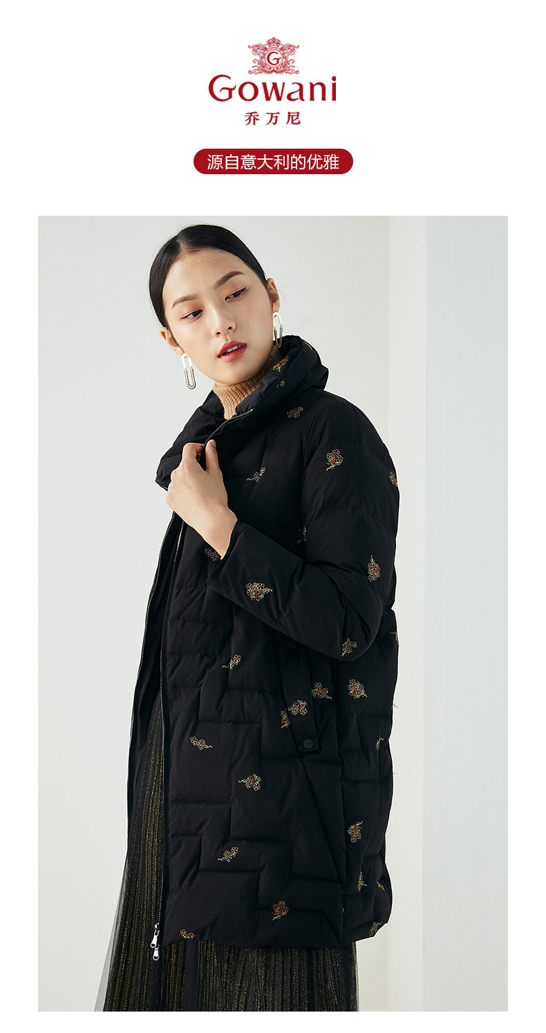 乔万尼秋冬新品重磅绣花工艺如意云设计抗寒保暖中长款羽绒服ES4T429