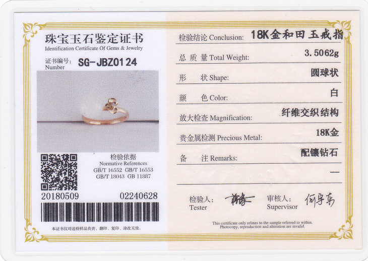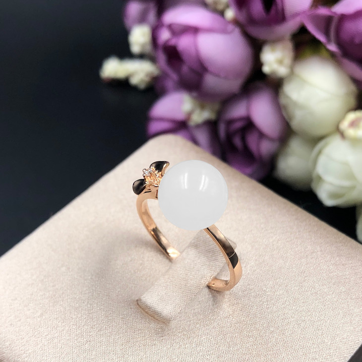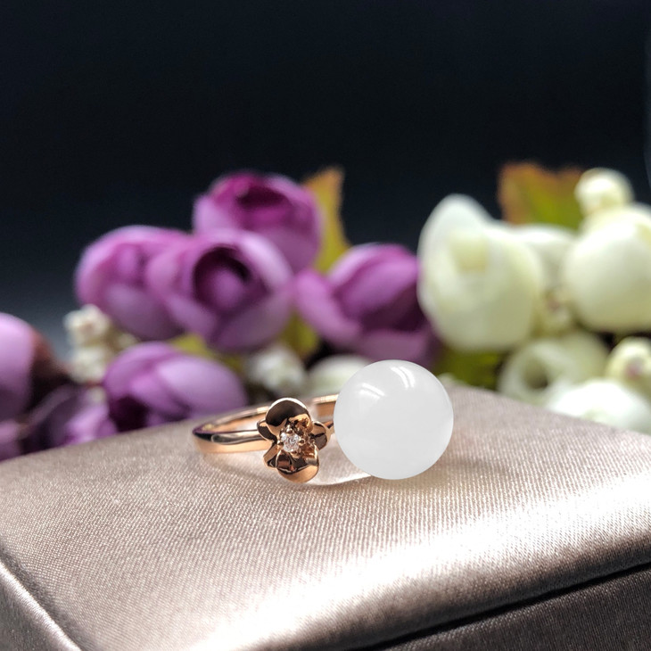 18K玫瑰金和田玉(白玉)镶钻戒指