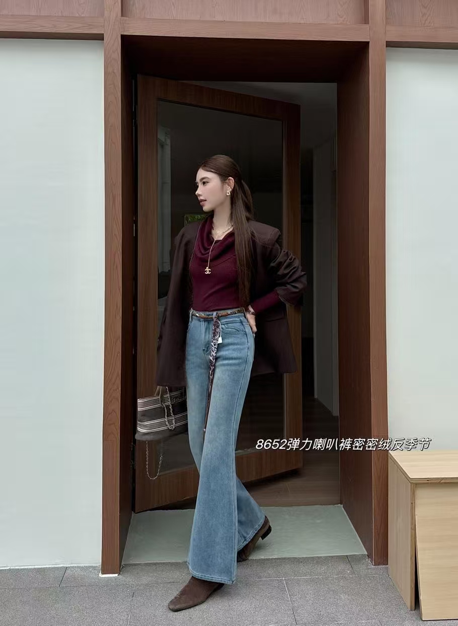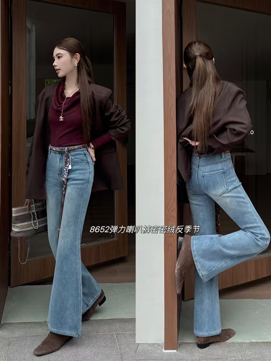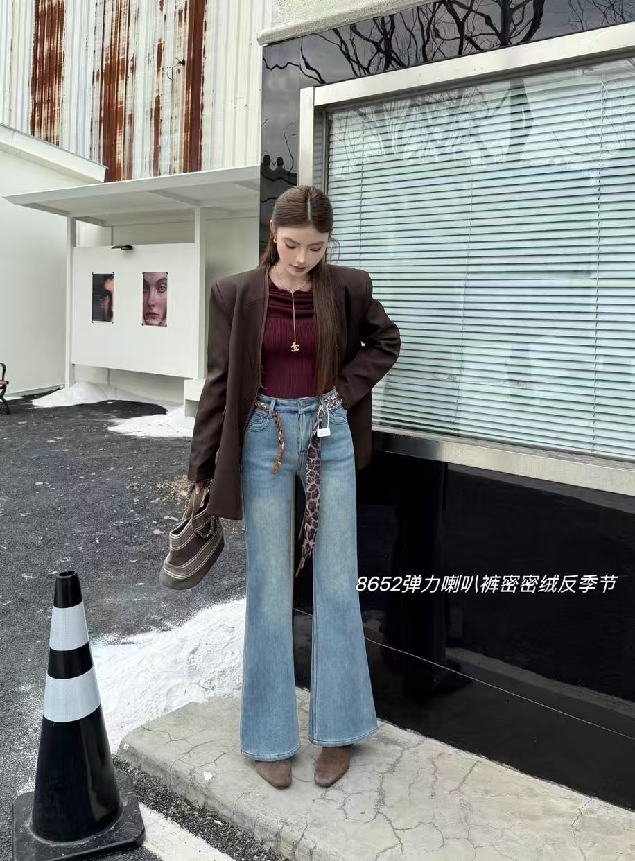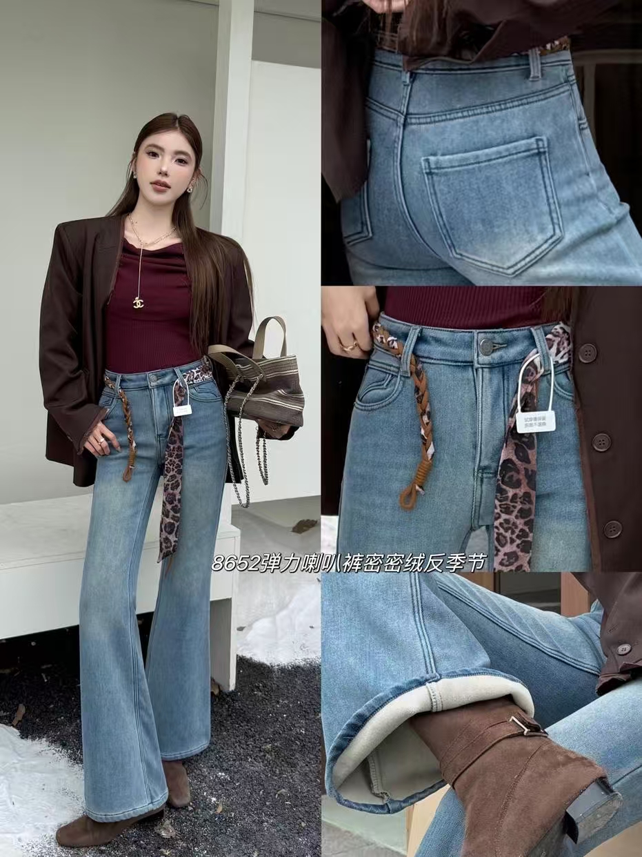 抢购价-不支持退(清)【自营】加绒🔥🔥🔥【爆款牛仔裤】密密绒~8652超显腿长 修身女神裤浅色百搭冬季牛仔-喜出