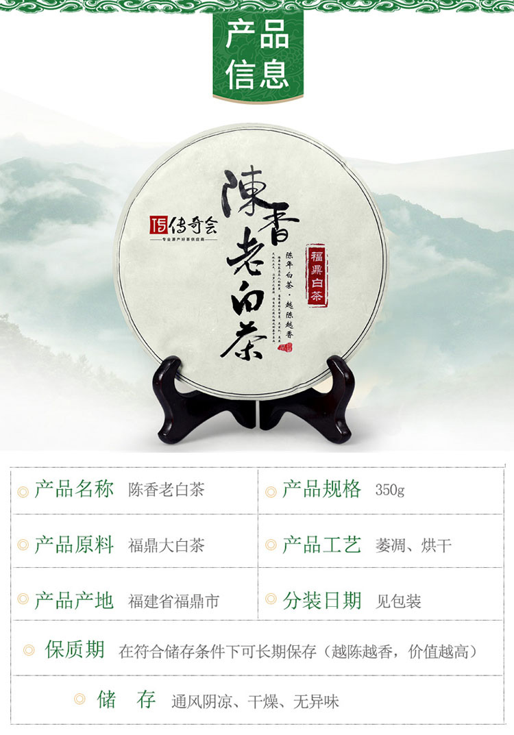传奇会茶叶 福鼎白茶 贡眉寿眉 高山陈香老白茶礼盒装350g