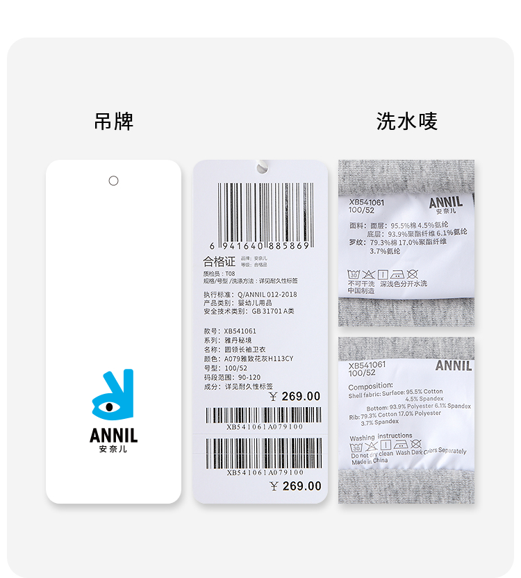 【实体店同款】男童圆领长袖卫衣冬季新款安奈儿童装XB541061