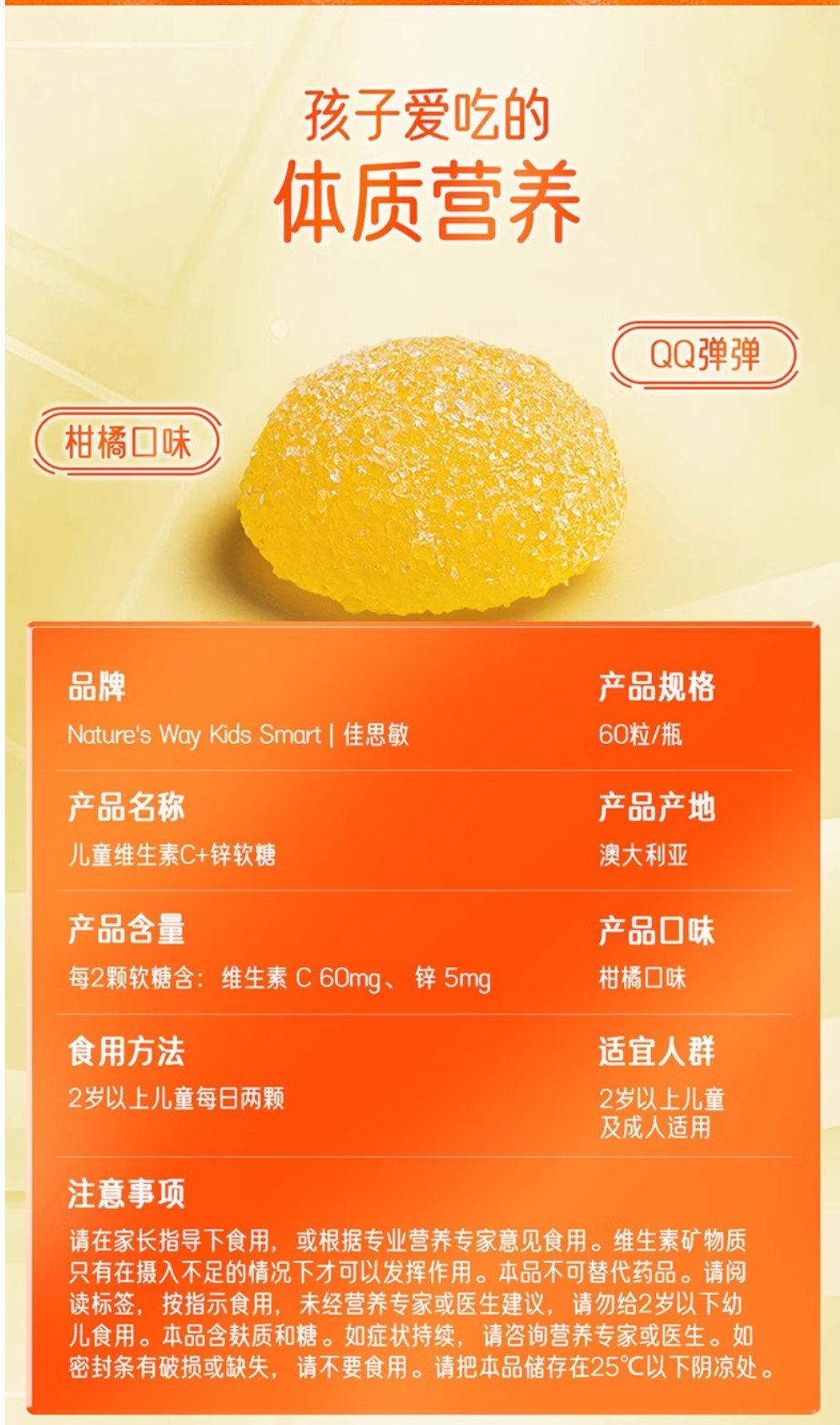 【跨境】26年10月 澳洲Nature's way佳思敏 儿童维生素C+软糖60粒