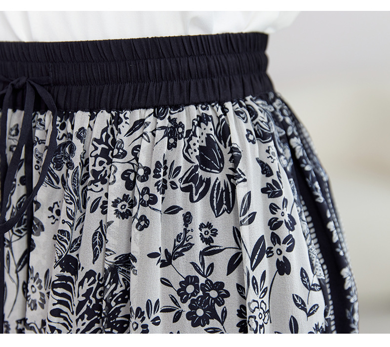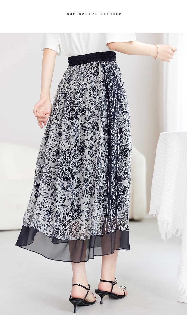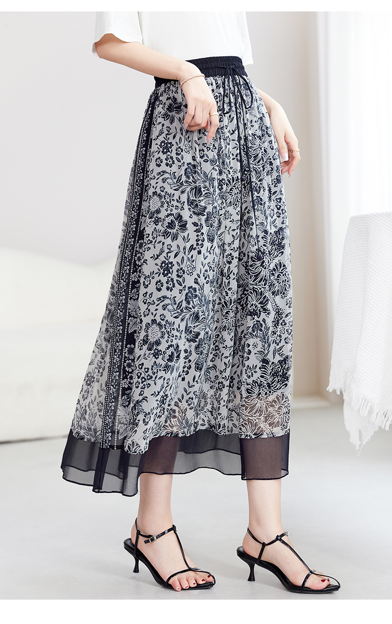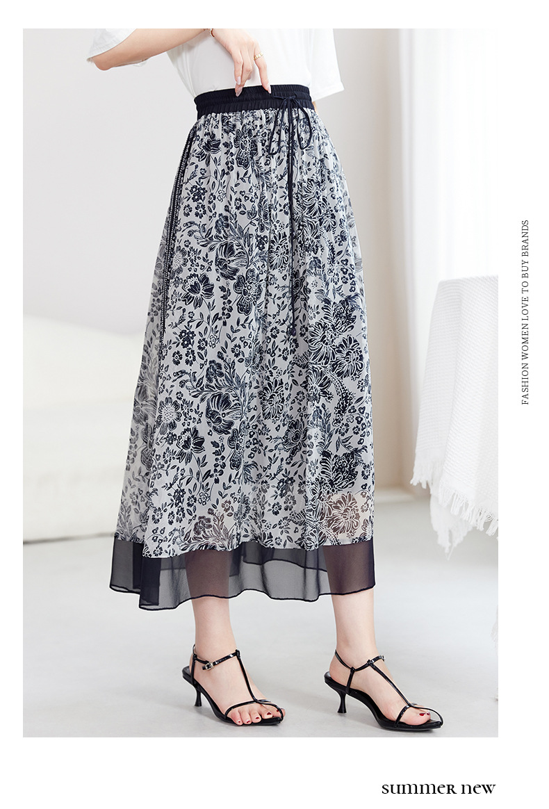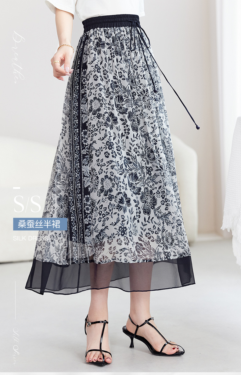 真丝乔其高腰印花中长裙,百搭桑蚕丝半身裙SM-72599992
