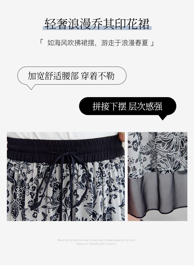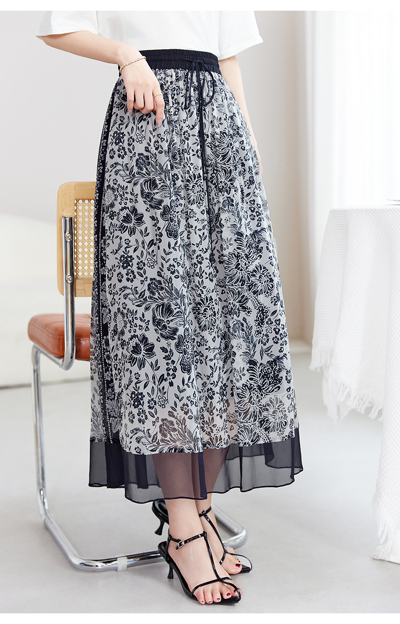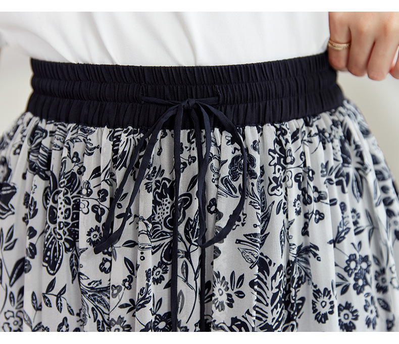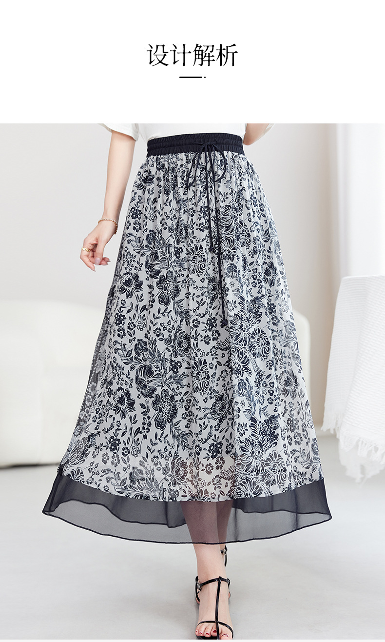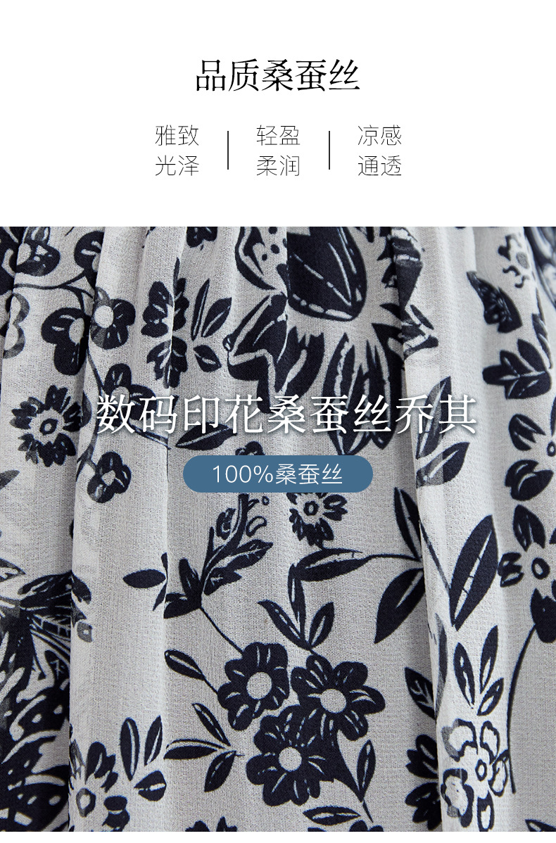真丝乔其高腰印花中长裙,百搭桑蚕丝半身裙SM-72599992