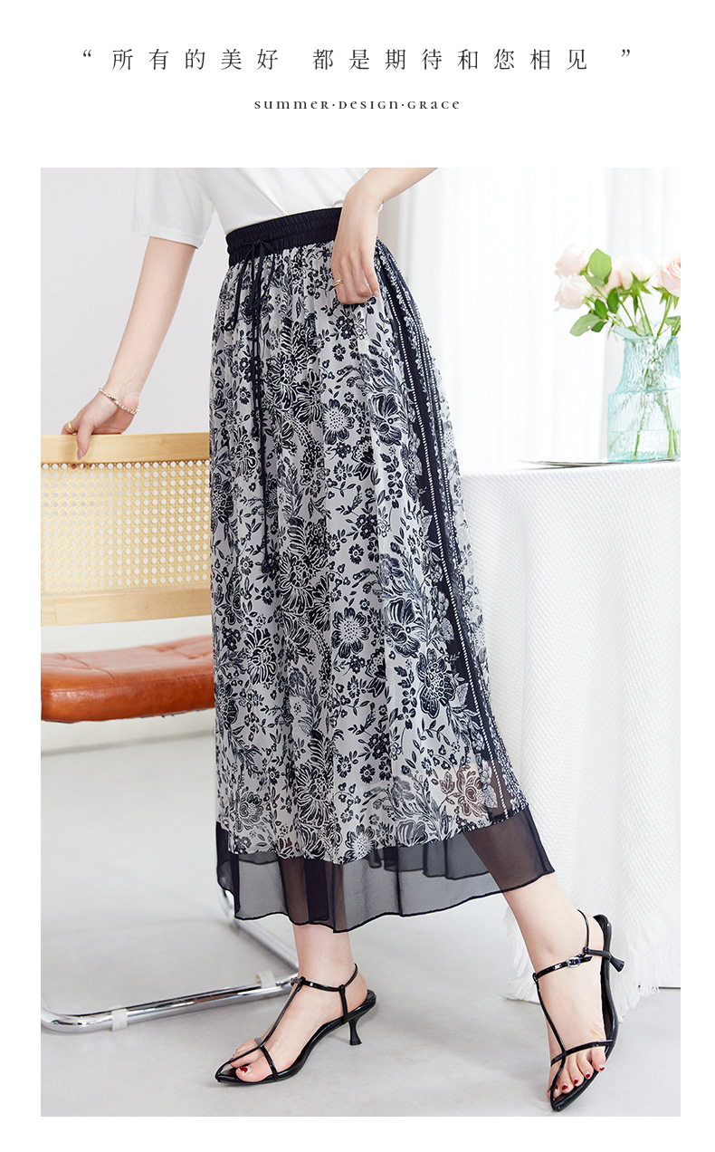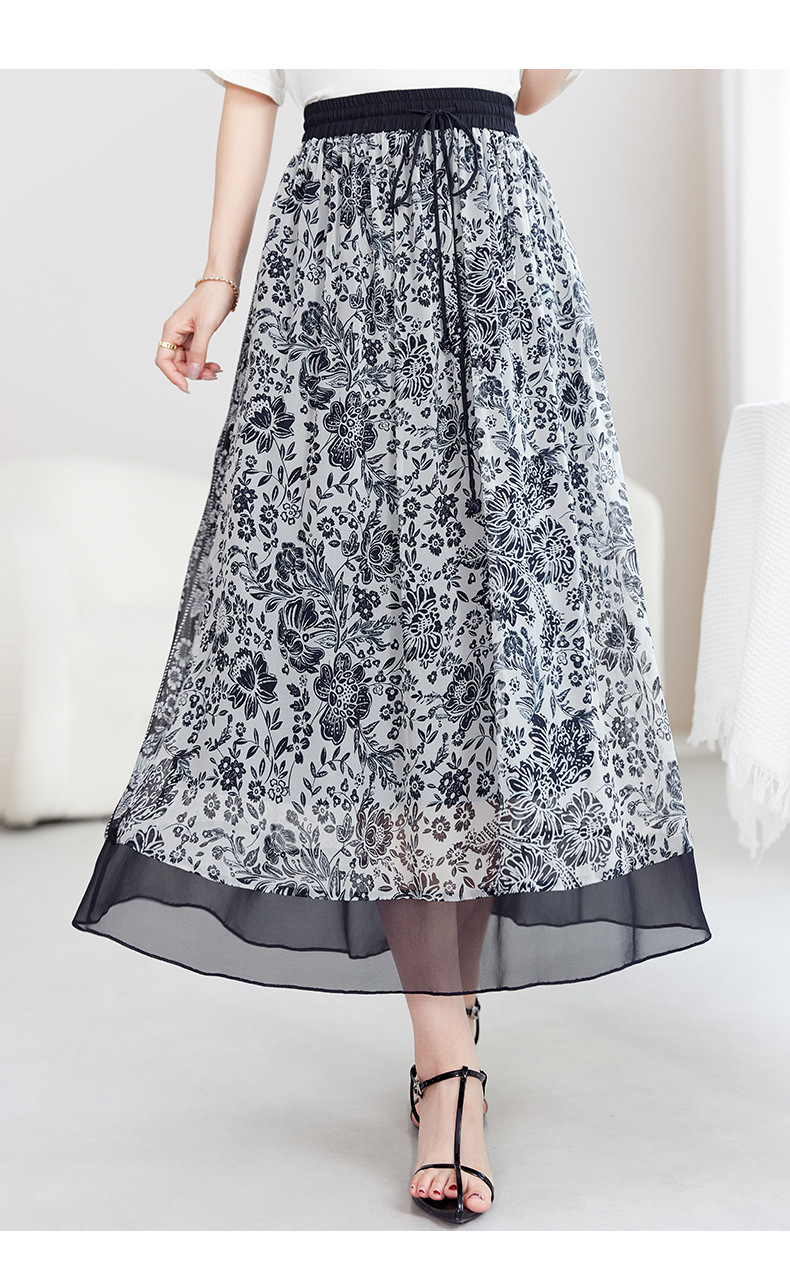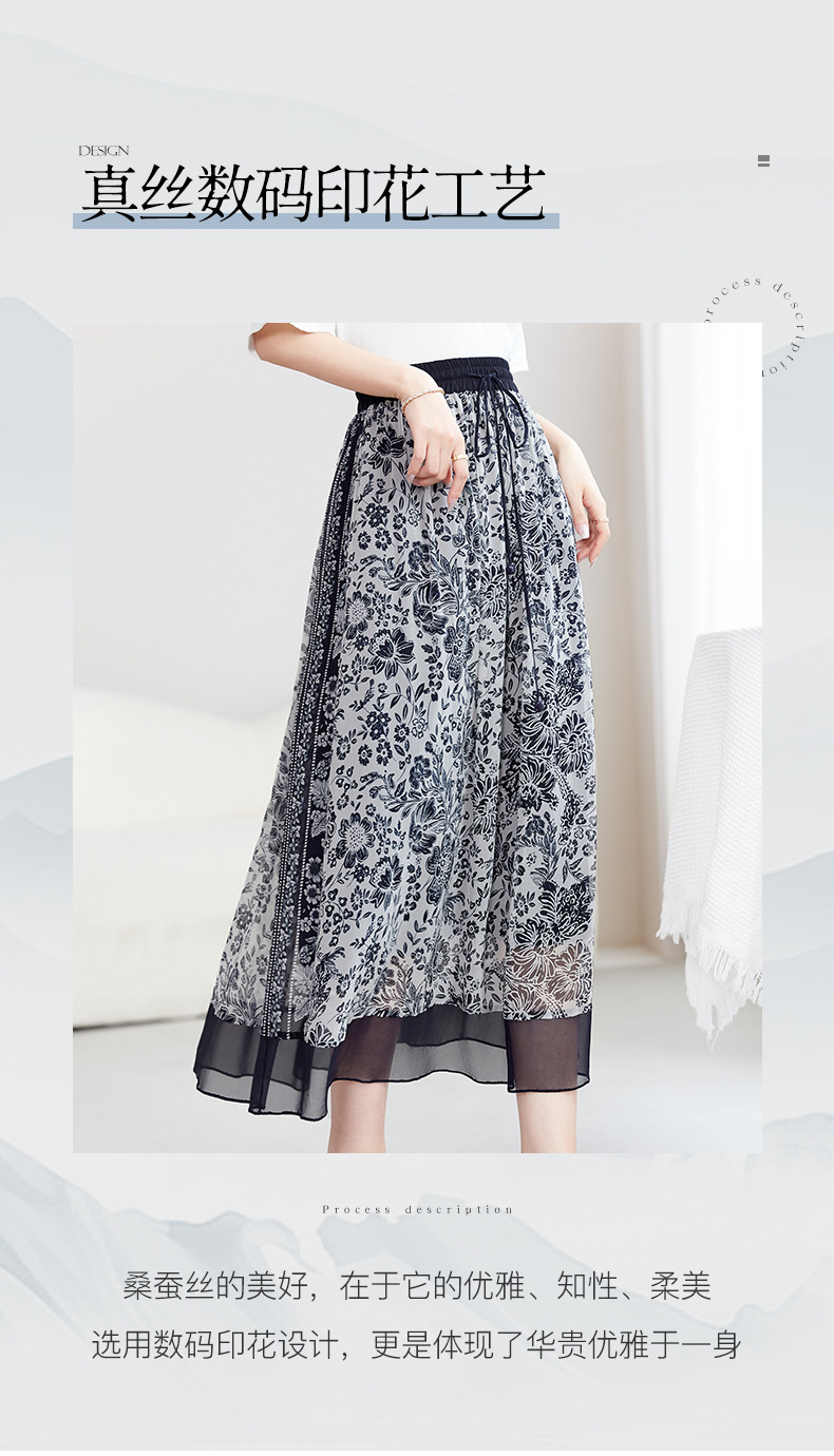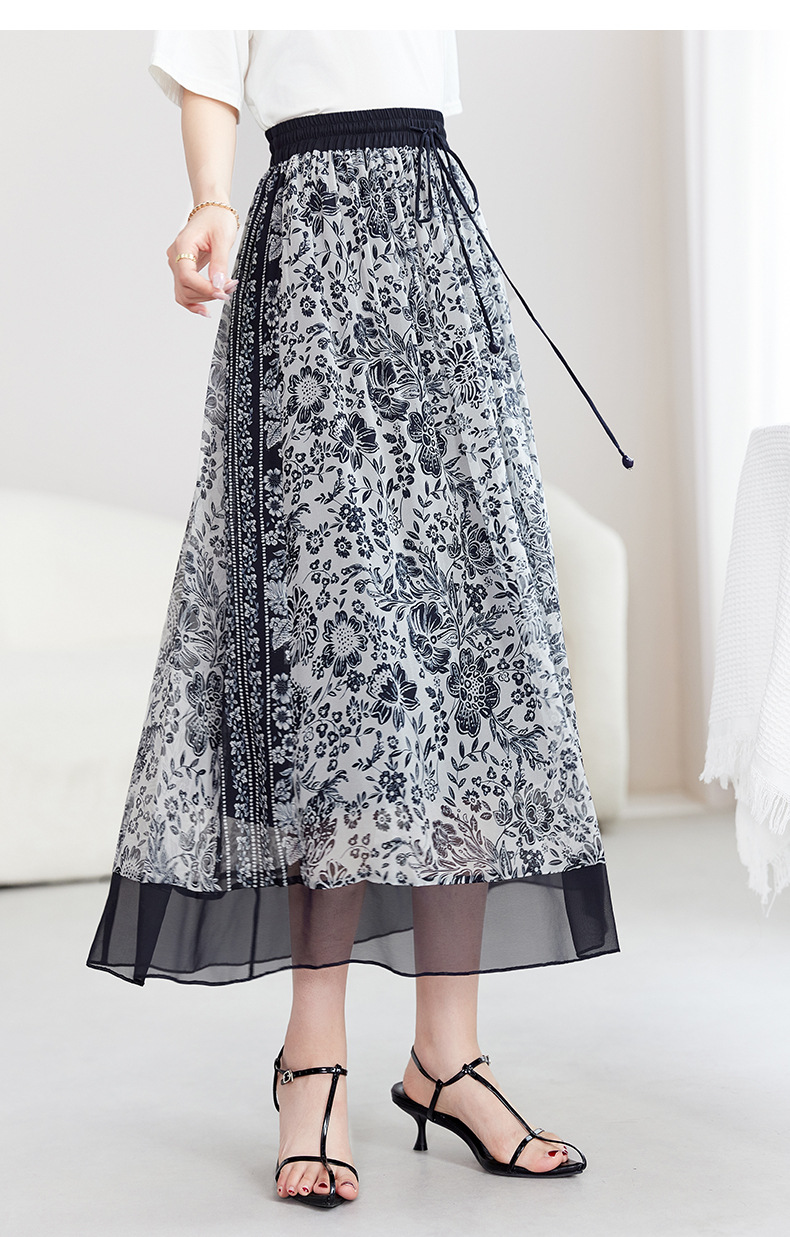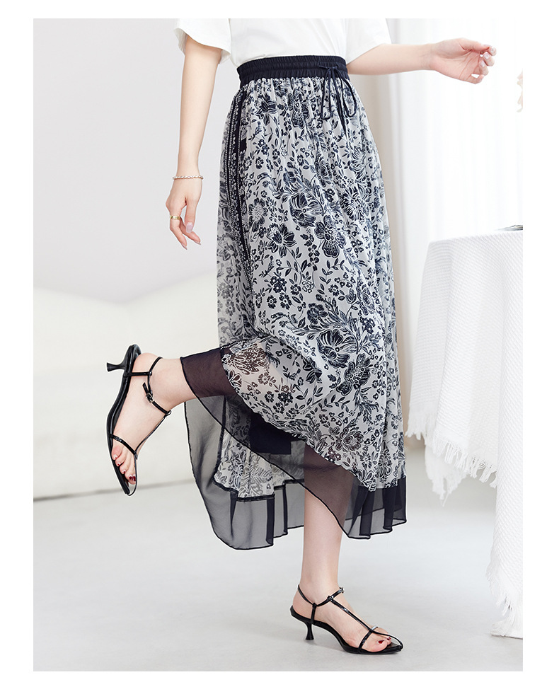 真丝乔其高腰印花中长裙,百搭桑蚕丝半身裙SM-72599992