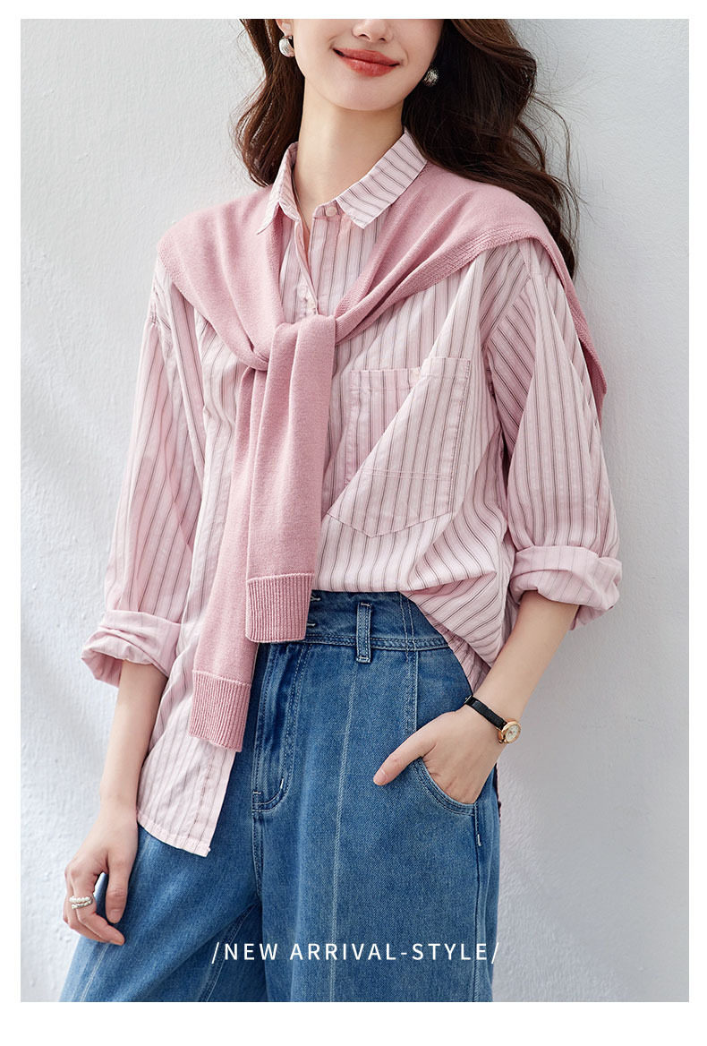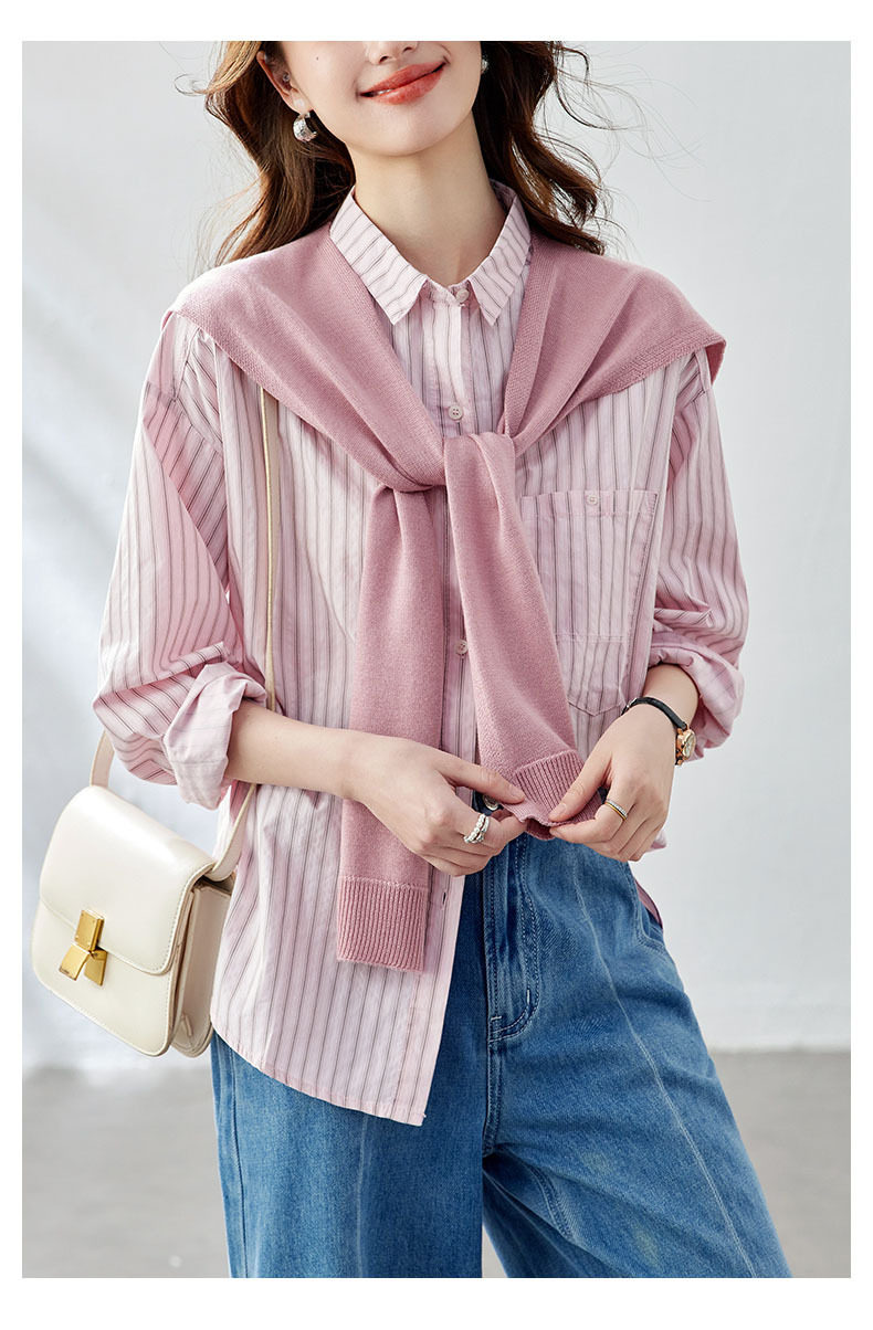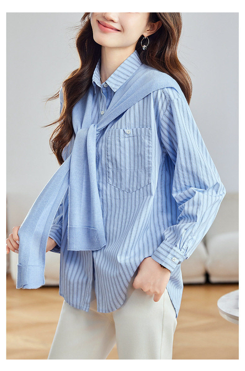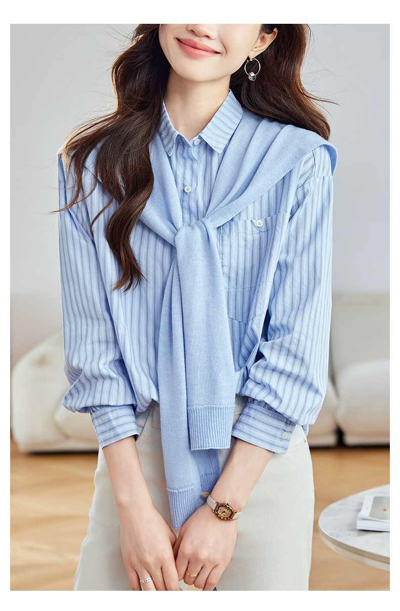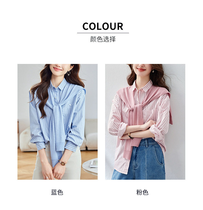 条纹衬衫女长袖2026春装新款上衣针织披肩上衣设计感女式衬衣 MJ-51076