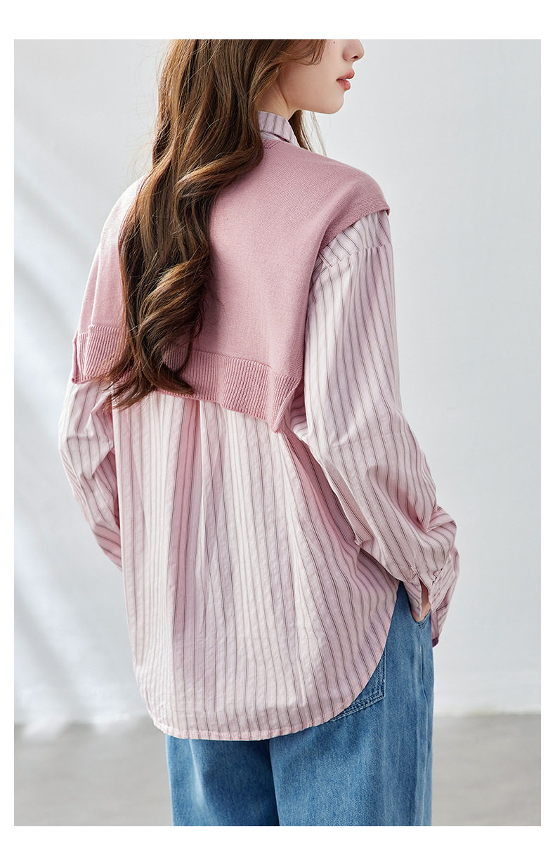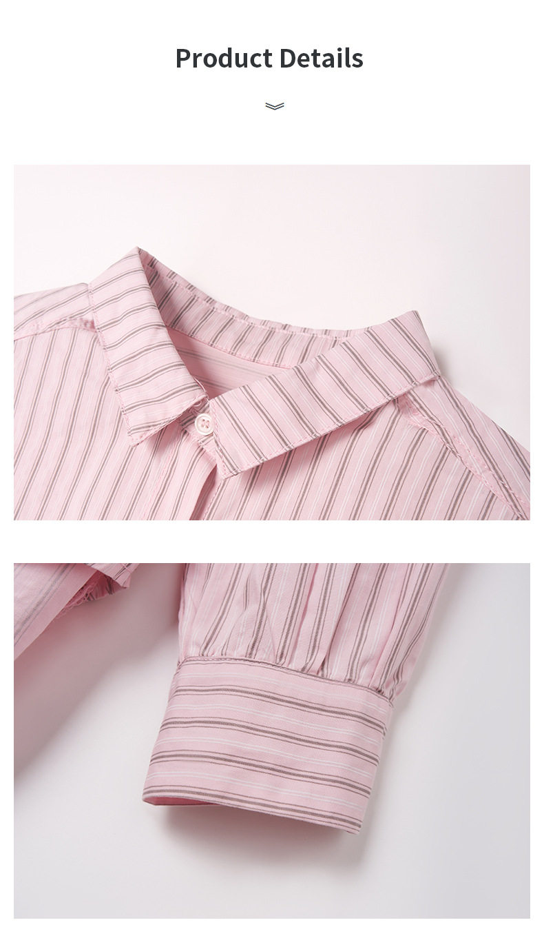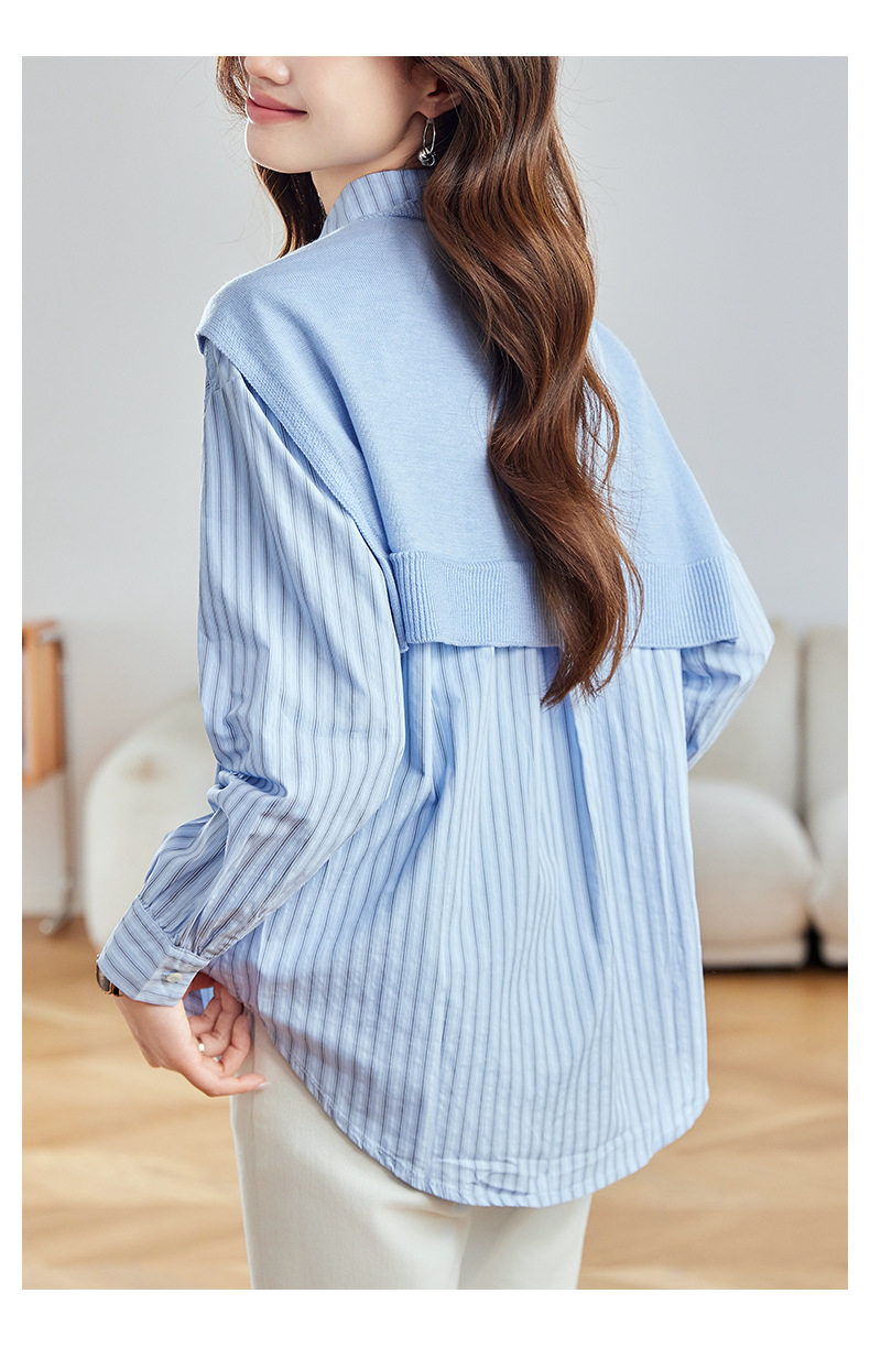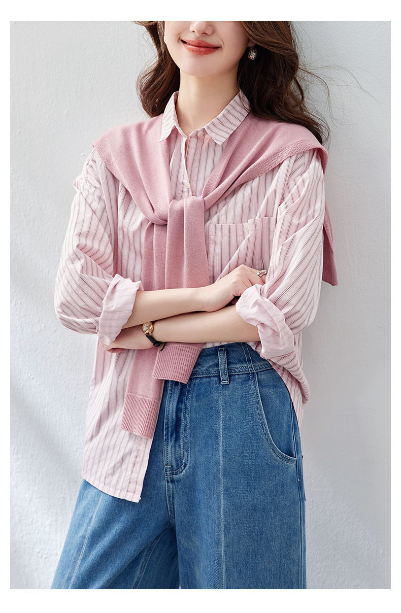 条纹衬衫女长袖2026春装新款上衣针织披肩上衣设计感女式衬衣 MJ-51076
