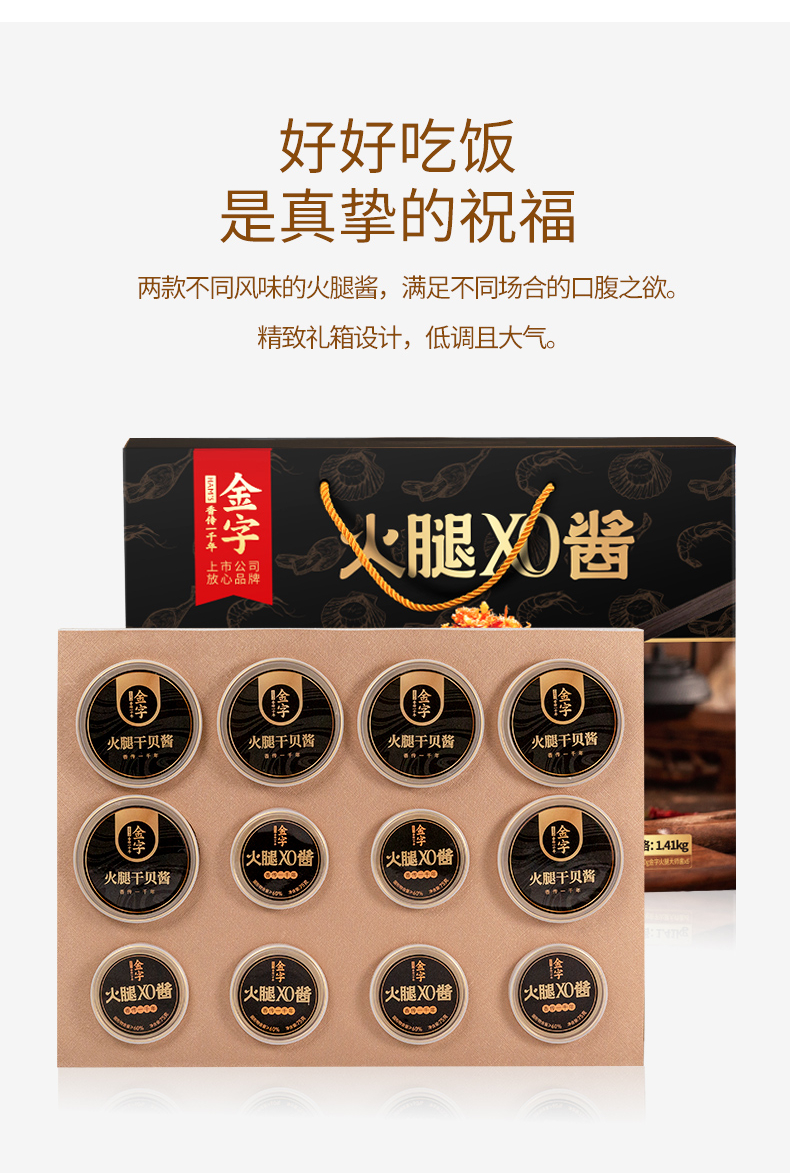 金字火腿XO酱大师酱礼盒12罐拌饭拌面酱火锅拌饭酱火锅调料酱辣酱年货特产过年新年春节拜年送礼中秋送礼 XO酱