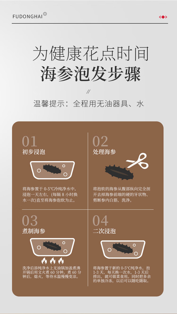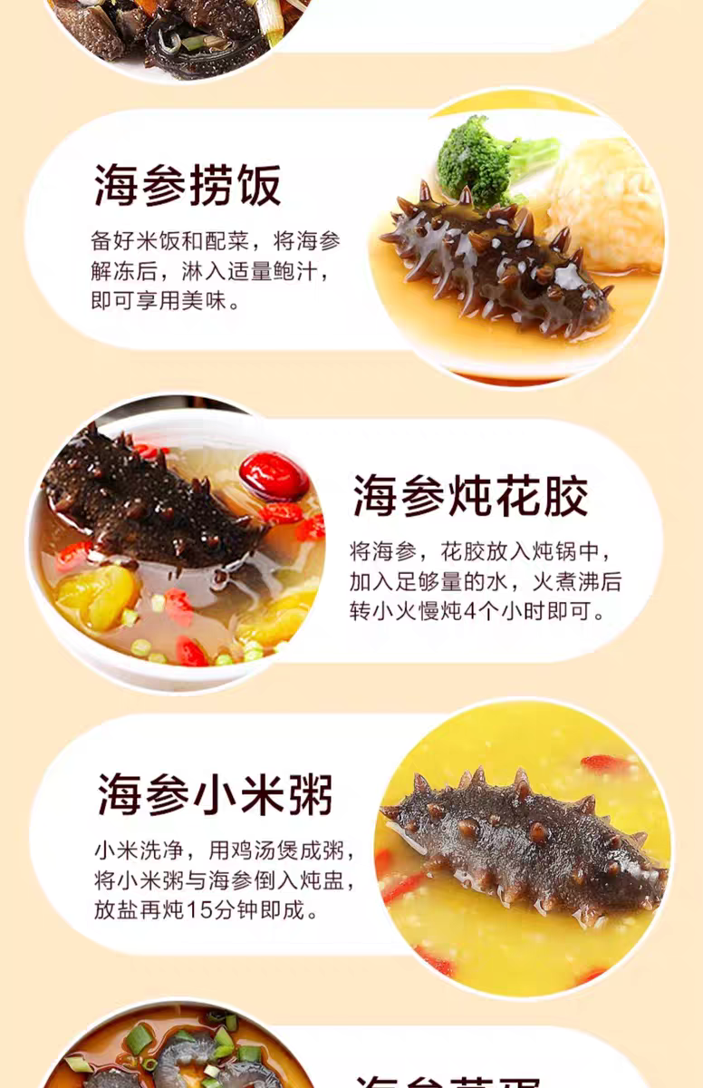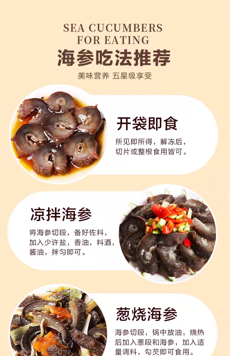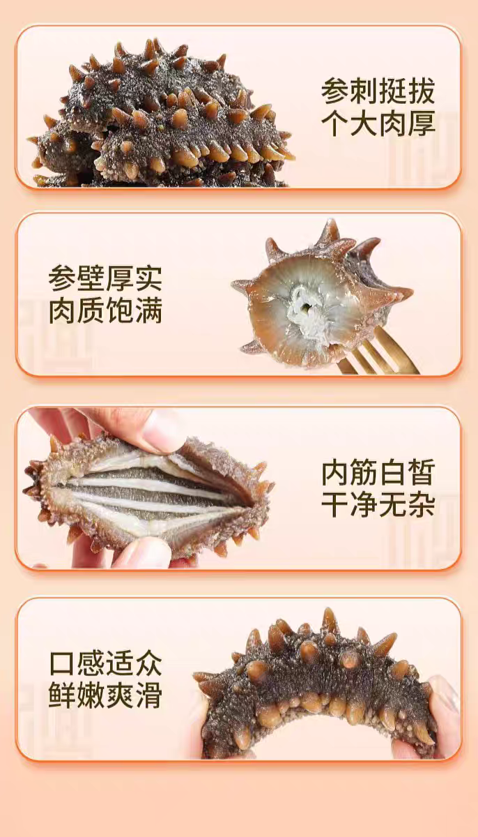 四季温补 八珍之首 刺粗肉厚 开袋即食不挂冰海参 大连原产有机辽参
