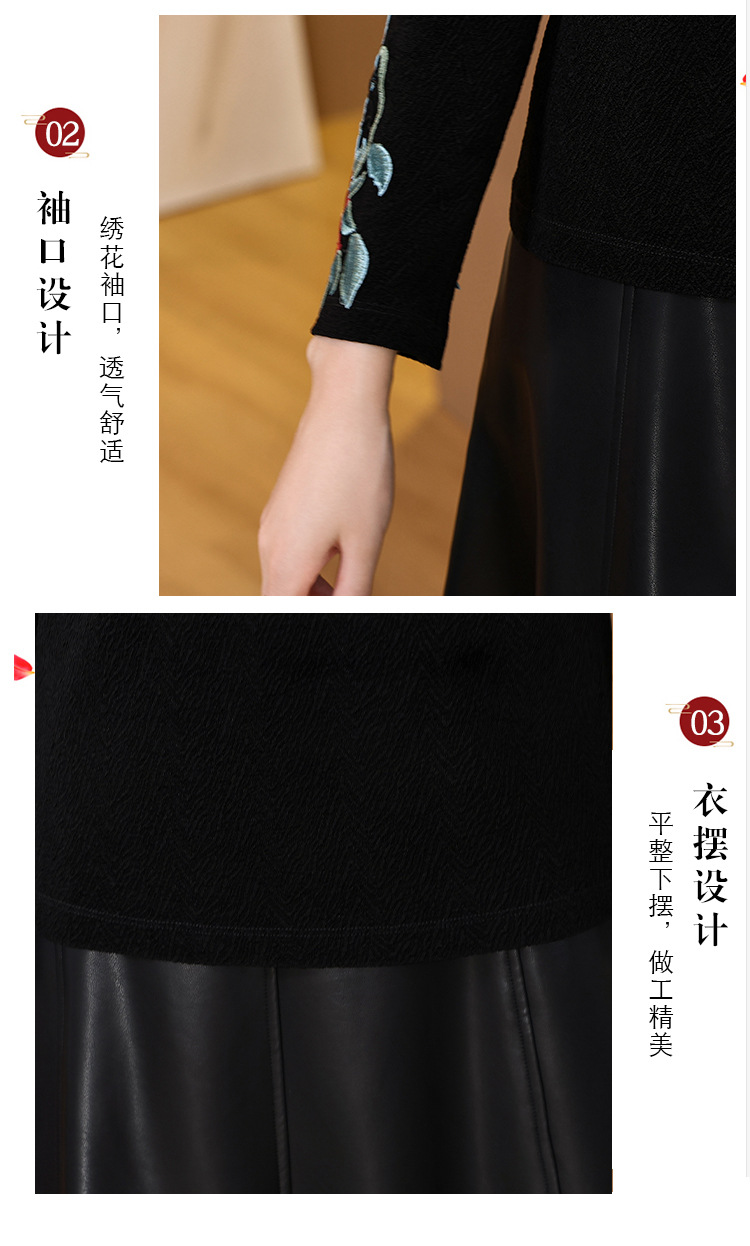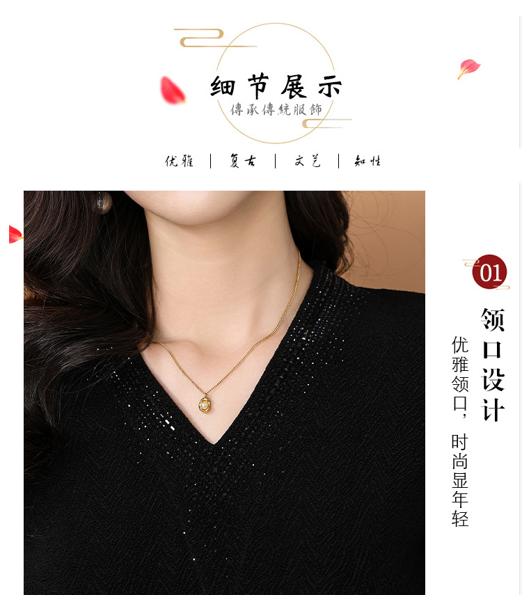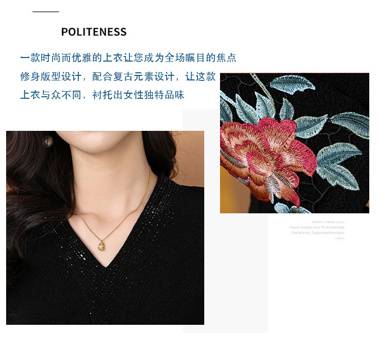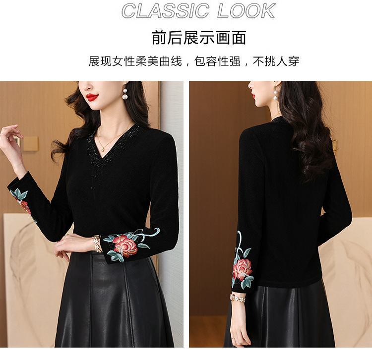 AHM yqwl6956国风V领长袖打底衫复古刺绣印花上衣 商品图4