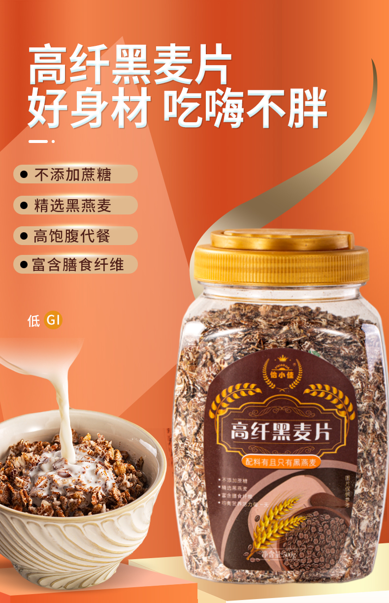 【粗粮代餐】怡小佳高纤即食黑麦片即冲即食百搭吃法轻食人士的优选