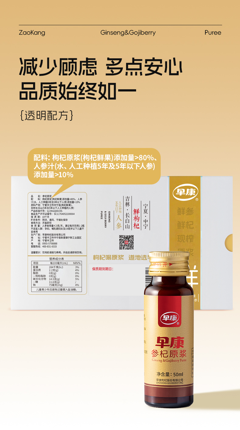 人参+枸杞原浆经典款50ml*6瓶/盒