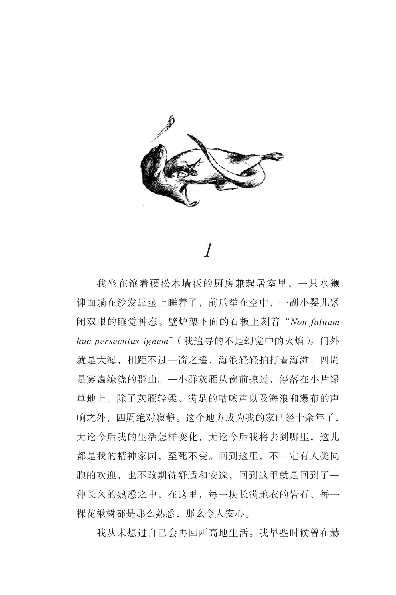 走进荒野的心灵之旅,开创人与动物关系书写新范式。本书以细腻的笔触描绘天光云影,瀑布与流水,让人仿若置身苏格兰西高地的隐秘海湾。作者以小说家的笔法,在深沉与欢快间不断跳跃,让人时而欢笑,时而落泪。