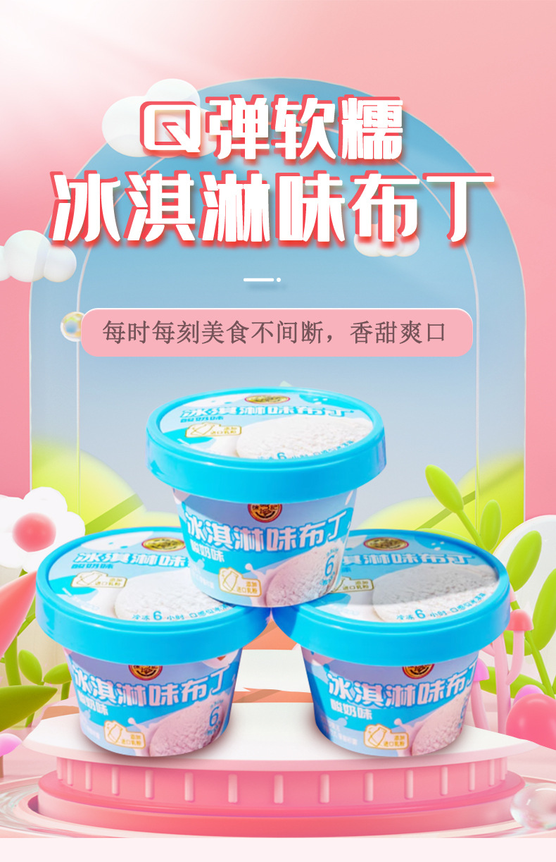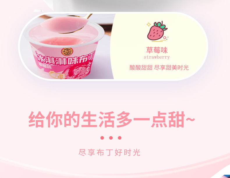 【Q弹软糯,冰淇淋味布丁,冷藏更好吃!】徐福记冰淇淋味布丁 草莓味酸奶味果冻布丁杯装 网红休闲零食 下午茶-QQ