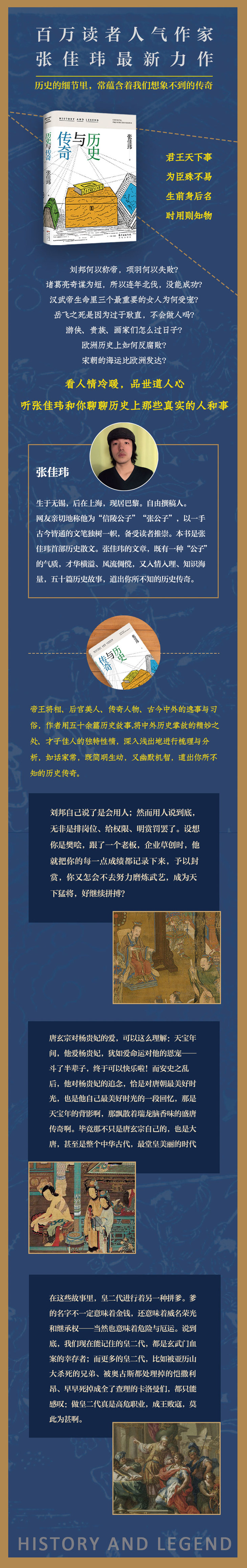 网友亲切地称他为“信陵公子”“张公子”,以一手古今皆通的文笔独树一帜,备受读者推崇。本书是张佳玮首部历史散文。张佳玮的文章,既有一种“公子”的气质,才华横溢、风流倜傥,又入情入理、知识海量,五十篇历史故事,道出你所不知的历史传奇。