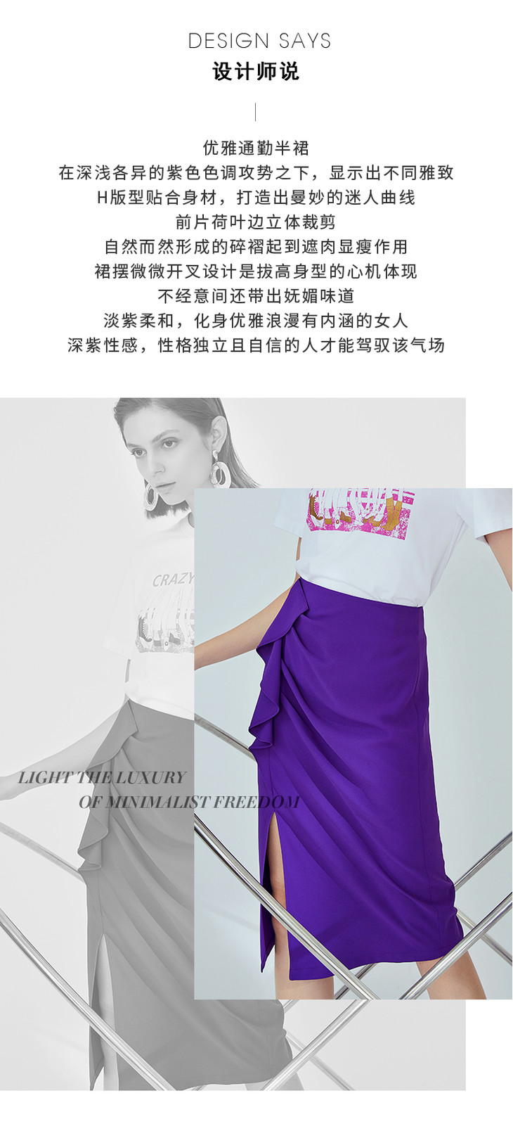 VIMAGE纬漫纪夏季优雅时尚高腰开叉百搭半身裙包臀裙女V1206802