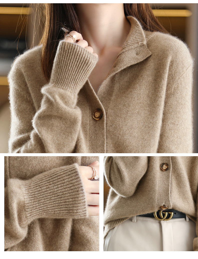 新款加绒加厚绒开衫针织毛衣宽松外套女圆领仿羊毛短外搭 YX6479