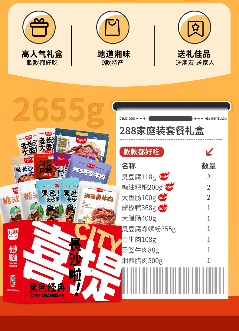 【家庭分享】黑色经典家庭装套餐特产零食狂欢礼包 共9款12份特产 配精美礼盒
