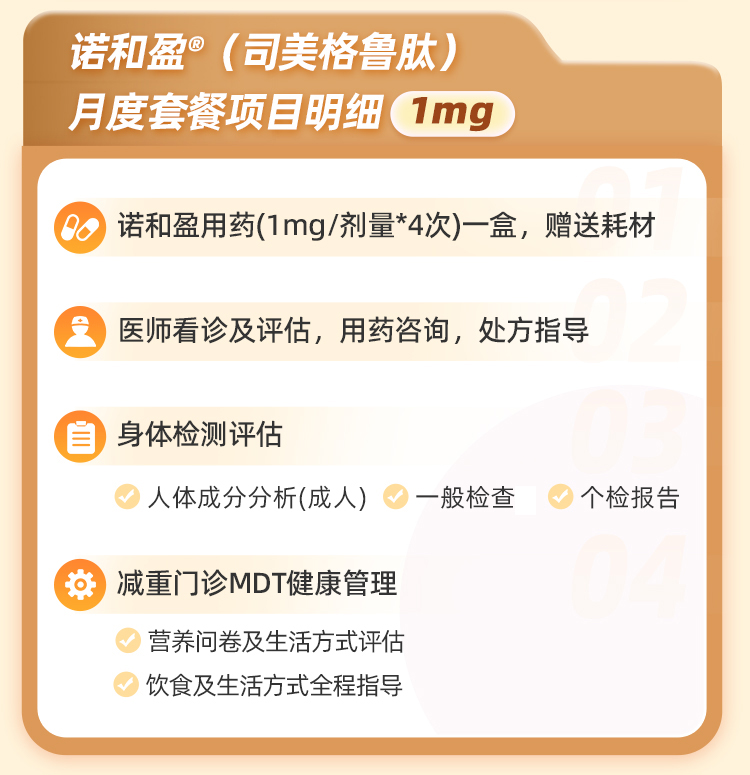 「爱康卓悦」诺和盈®(司美格鲁肽)月度套餐 1mg