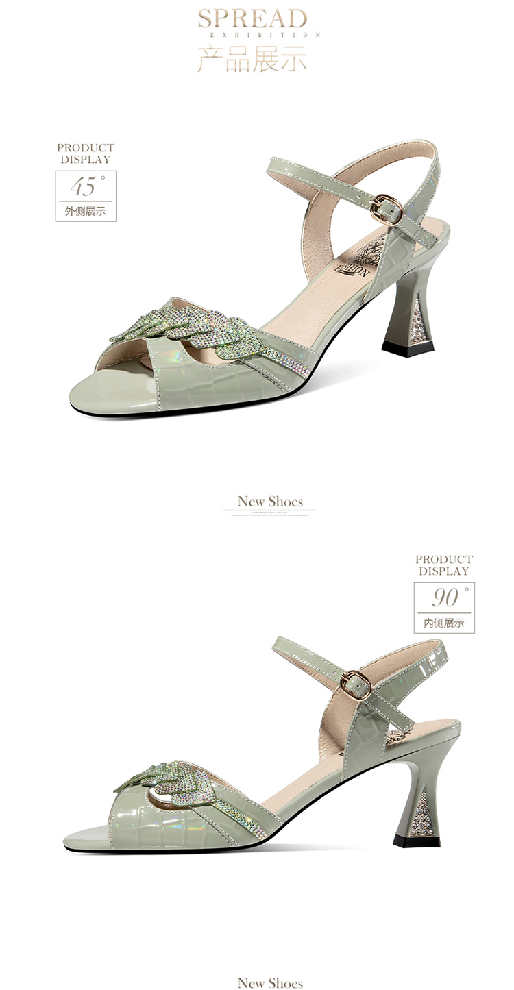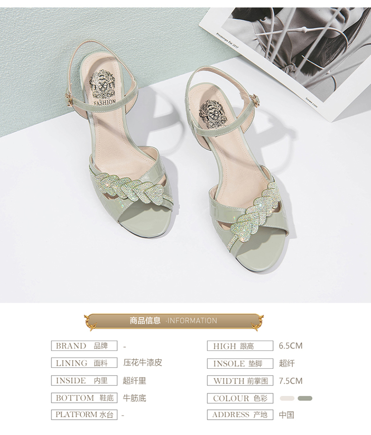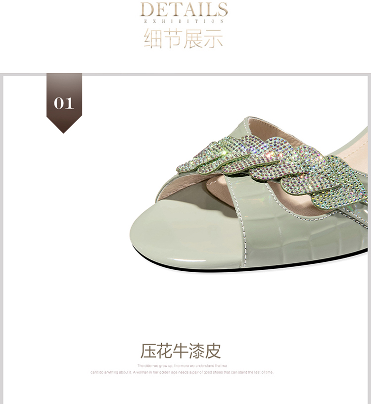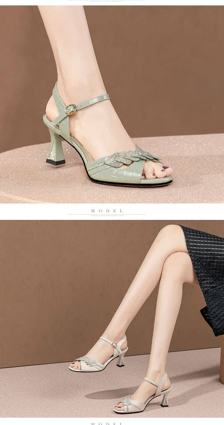 日常百搭,压花幻彩牛漆皮水钻爱心高跟凉鞋HY-H3165
