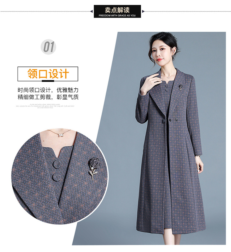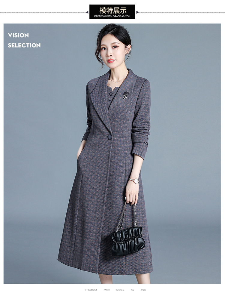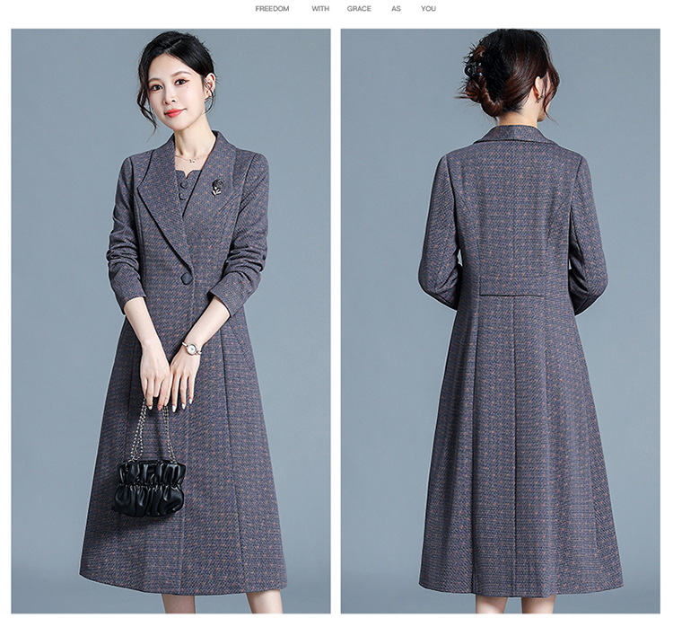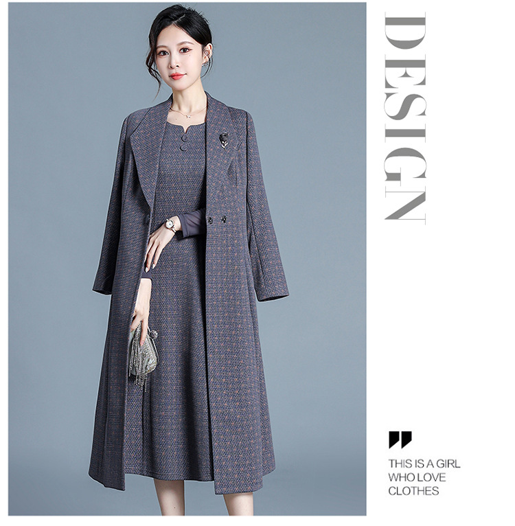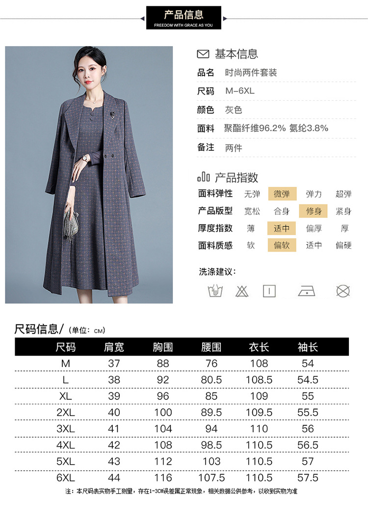 QYM H3385-Y连衣裙两件套A字裙西装领中长款风衣外套时尚套装