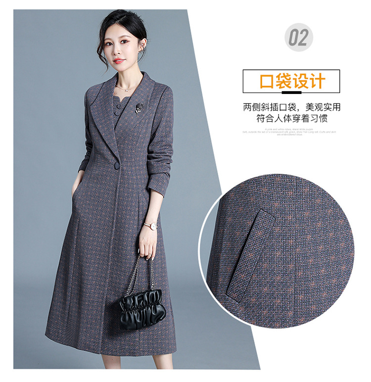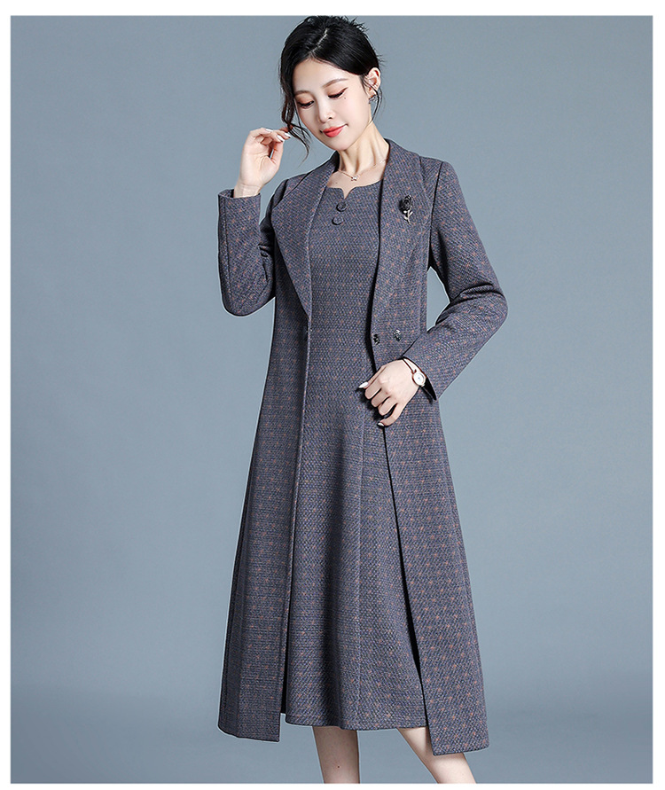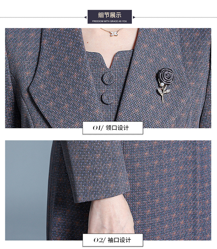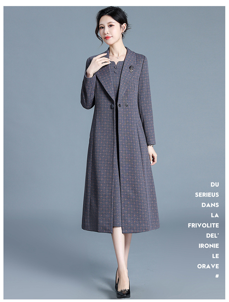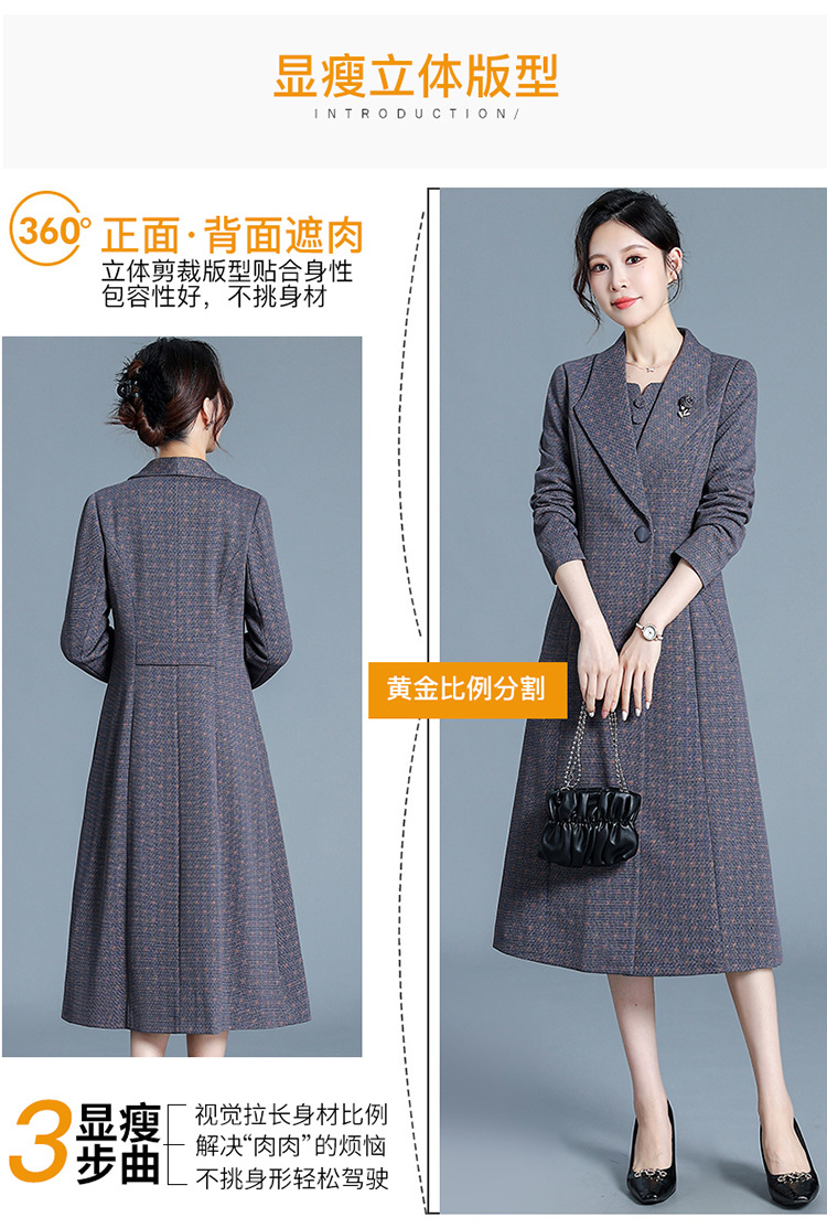 QYM H3385-Y连衣裙两件套A字裙西装领中长款风衣外套时尚套装