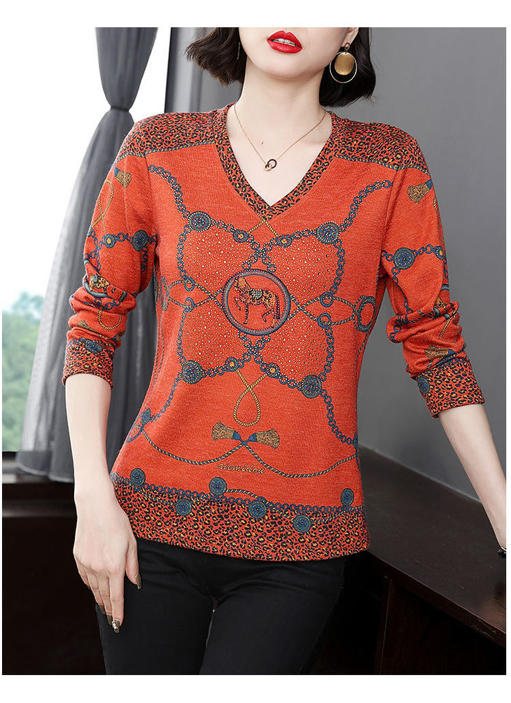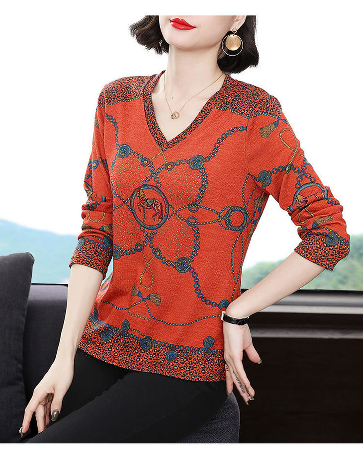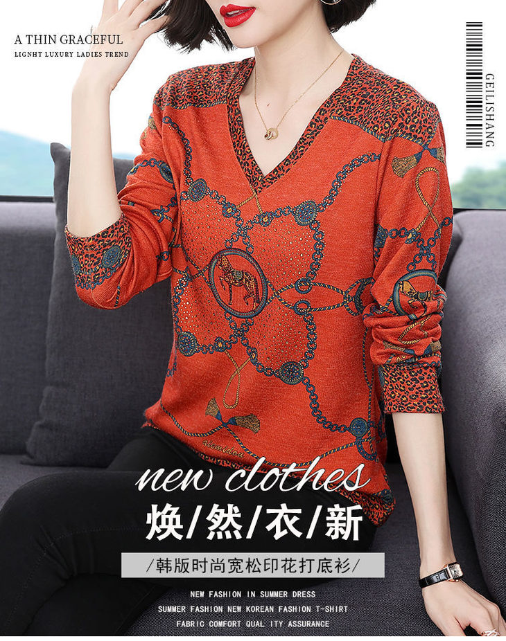 AA YC洋气减龄V领长袖t恤百搭宽松高档打底衫
