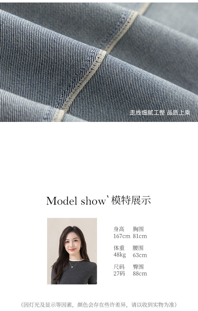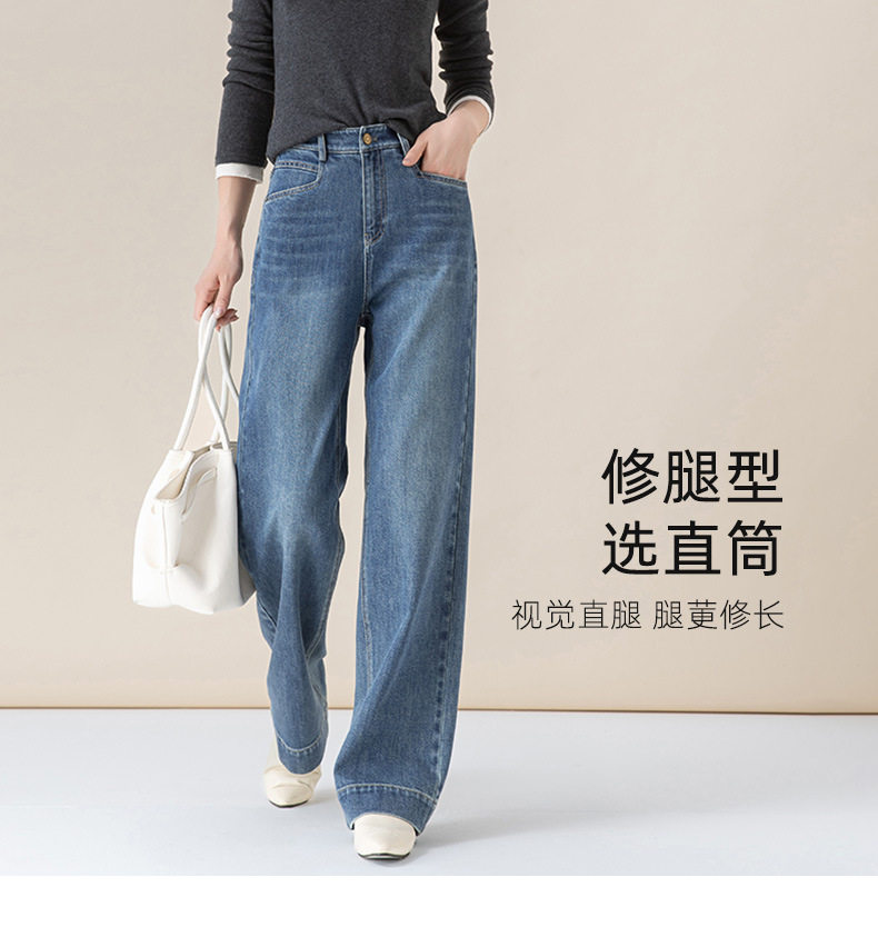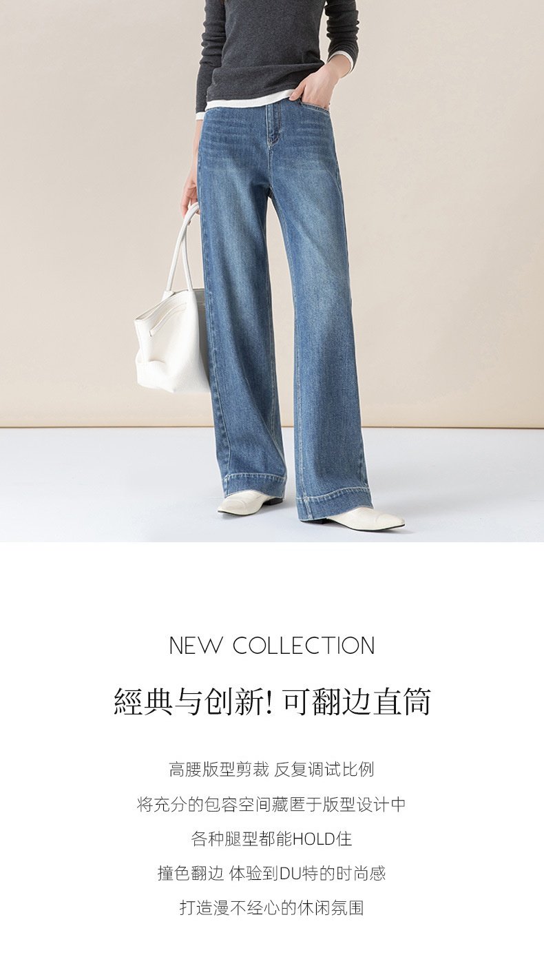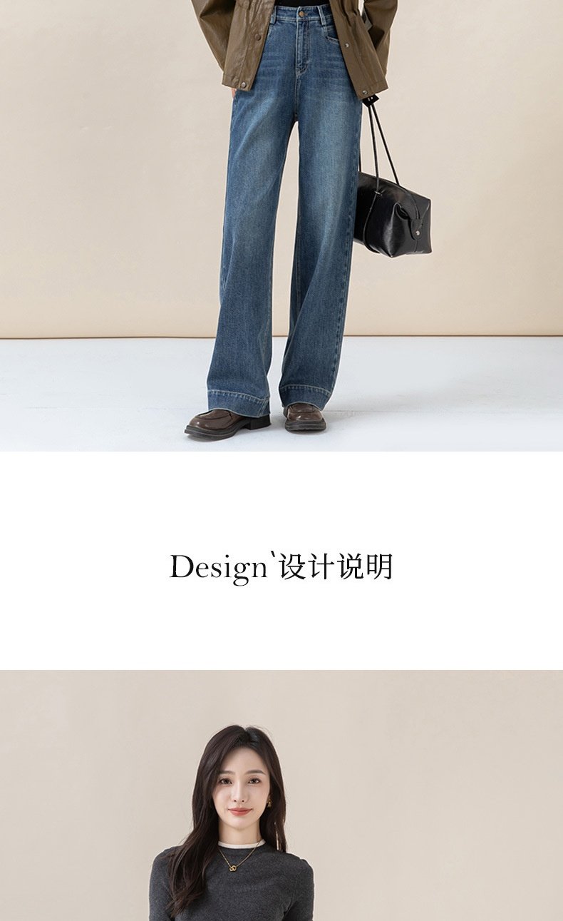 「高货xg」全新升级【铂金会员165/天猫219/差价54】(22258)洛诗琳气质丹宁蓝宽松垂感窄版阔腿裤2025秋冬小个子直筒牛仔裤
