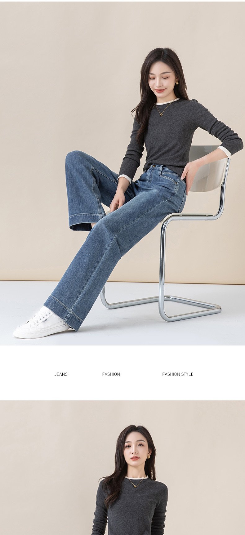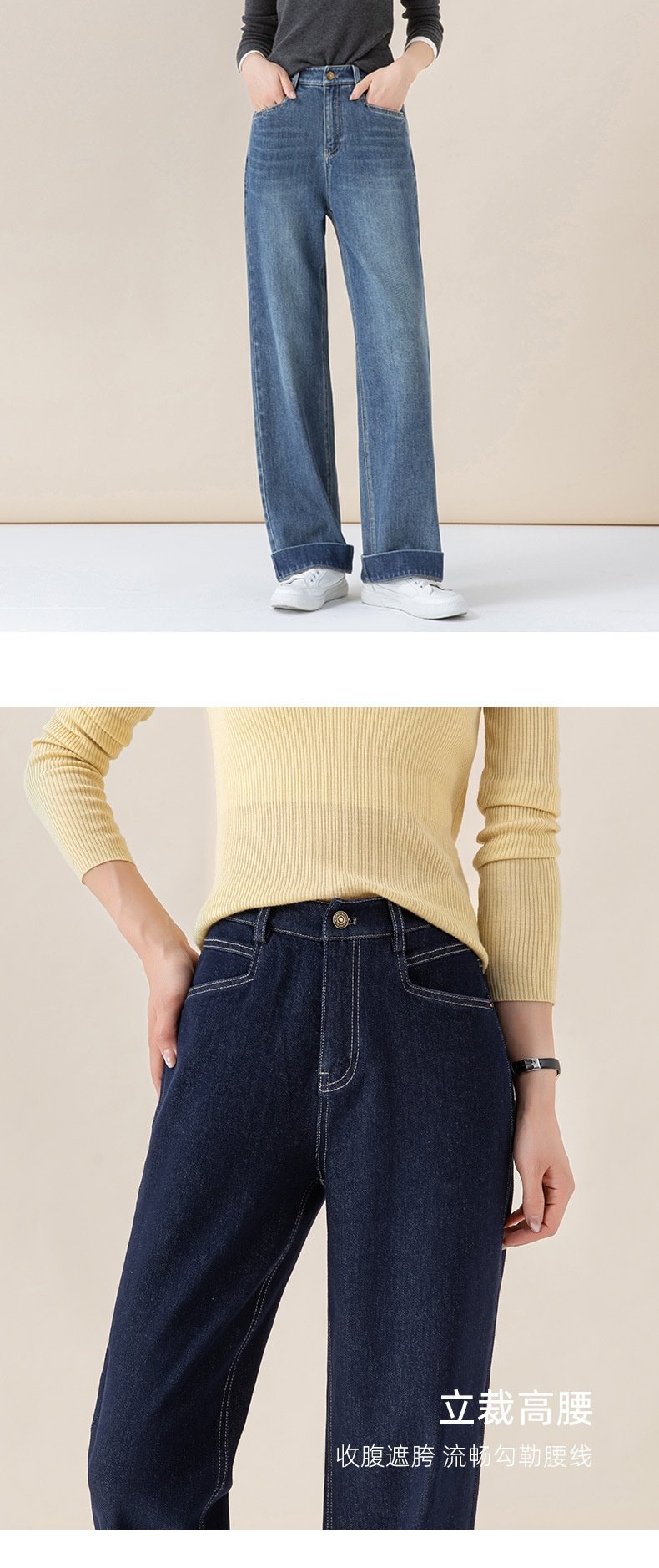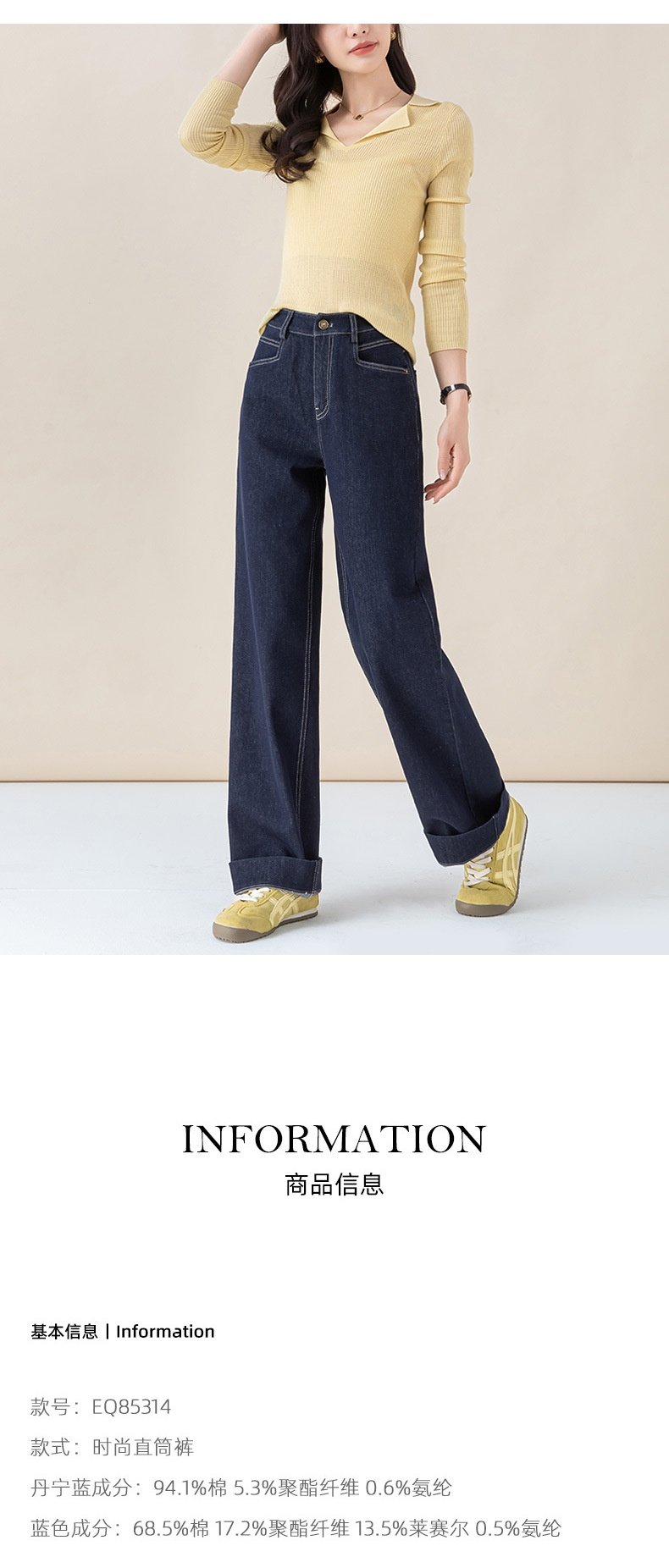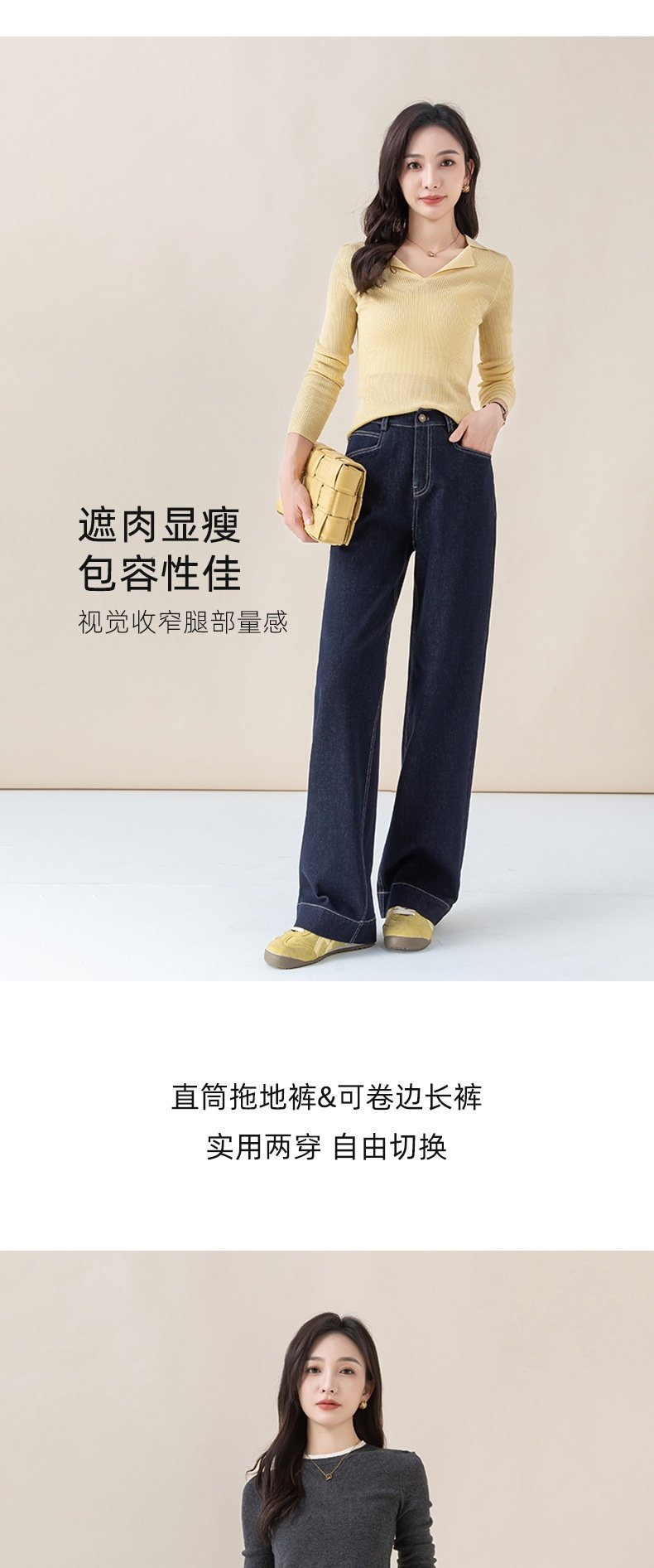 「高货xg」全新升级【铂金会员165/天猫219/差价54】(22258)洛诗琳气质丹宁蓝宽松垂感窄版阔腿裤2025秋冬小个子直筒牛仔裤