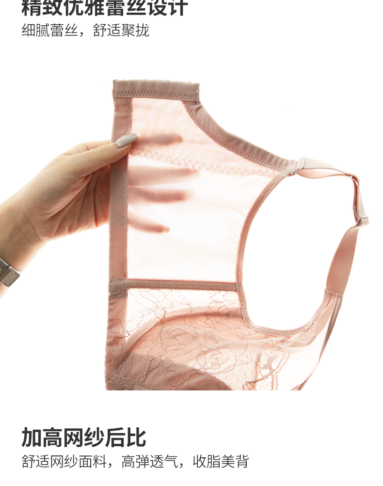贝佳人新品网纱背心围无钢圈胸罩蕾丝美背大胸显小内衣防外扩薄杯BW32914