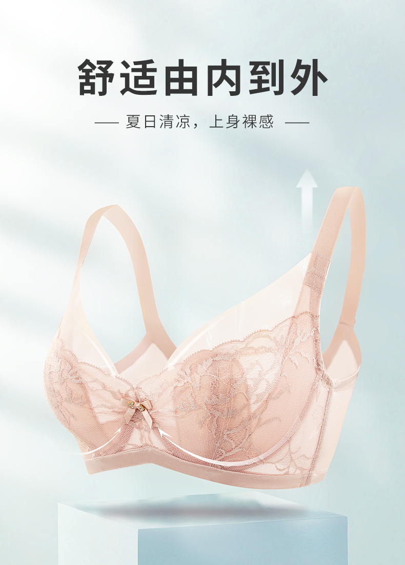 贝佳人新文胸美背聚拢性感深V轻薄透气水晶杯舒适软钢圈内衣女BW93903
